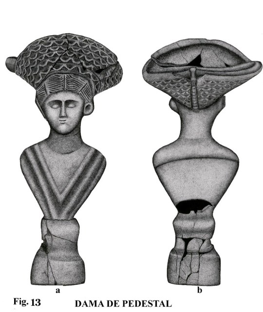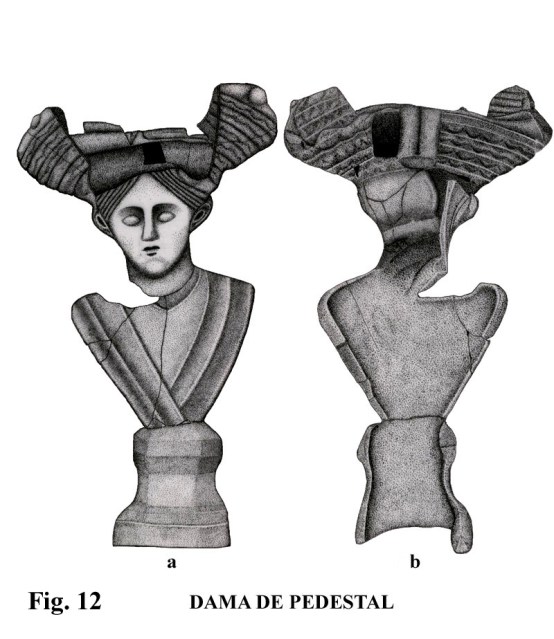 Las figuras de pedestal, 12, 13 y 14, son bustos de mujer, que destacan por la belleza de su ejecución. La colección de terracotas del Museo Municipal de Priego de Córdoba constituye un ejemplo de elementos paralelos en lo referente al modelo de figuras femeninas de pedestal, con la salvedad de que estas son del s. II d. C., y no han sido halladas en tumba de incineración.
