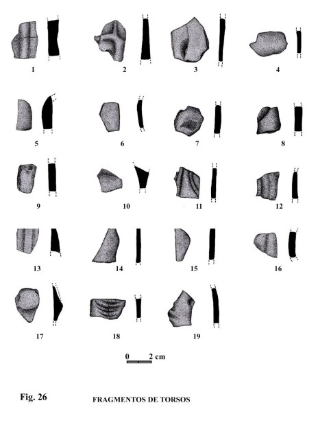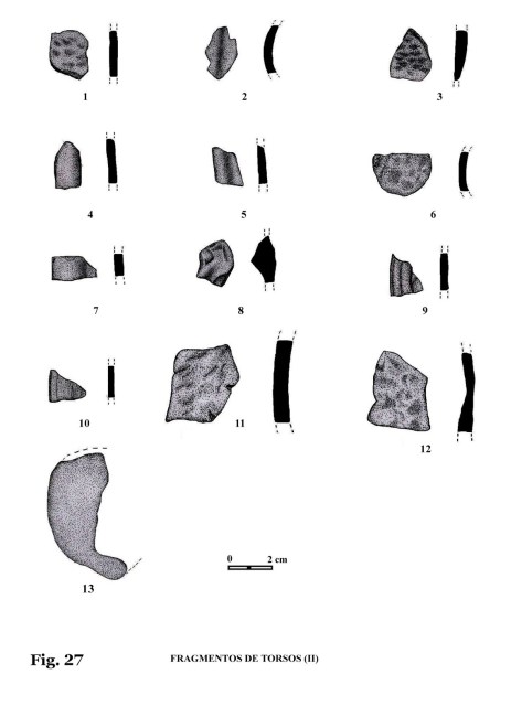 Se supone que los fragmentos de bustos y de cabezas, han formado parte de figuras completas (figs. 11, 21, 22).