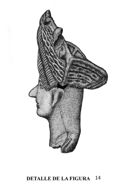 En la figura 21-5, de proporciones reducidas, se puede comprobar la existencia de detalles, como una diadema, con peinado y moño recogido en la parte de su nuca. Hay algún paralelo en la provincia de Cádiz, pero de tamaño superior y en diferente material.
