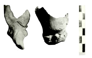 Fragmentos que podía pertenecer a un elemento de unión entre las parte de una figura. El segundo parece más un trozo de desecho del alfar.