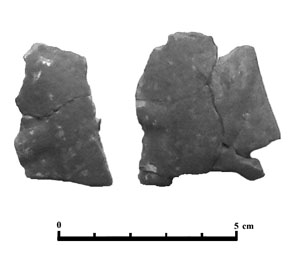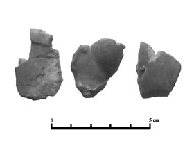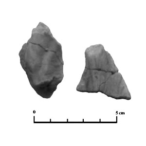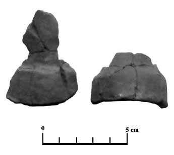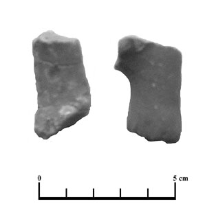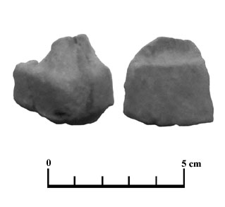 Fragmentos que podía pertenecer a un elemento de unión entre las parte de una figura. El segundo parece más un trozo de desecho del alfar.