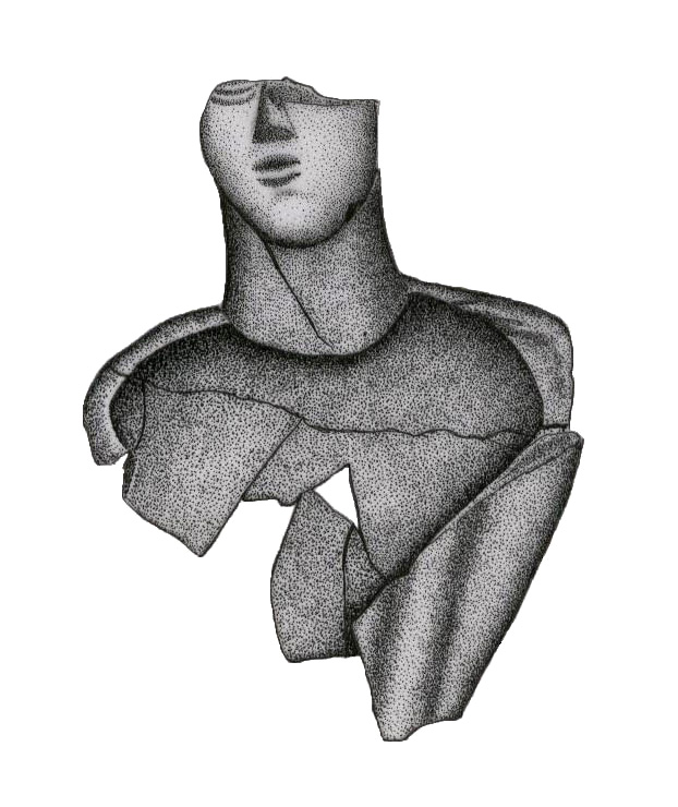 Se supone que los fragmentos de bustos y de cabezas, han formado parte de figuras completas (figs. 11, 21, 22).