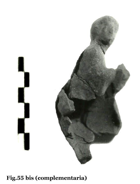 Nos llama la atención observar que, entre las mismas figuras, se encontraron fragmentos amorfos, como si fueran desechos o recortes pertenecientes a los retoques que se hacían a las figuras, una vez modeladas (fig. 30, nº 13, 14,15,16). Ese supuesto factor, el desecho, da pie a creer que podría tratarse de un taller, aunque esto sólo es una suposición.