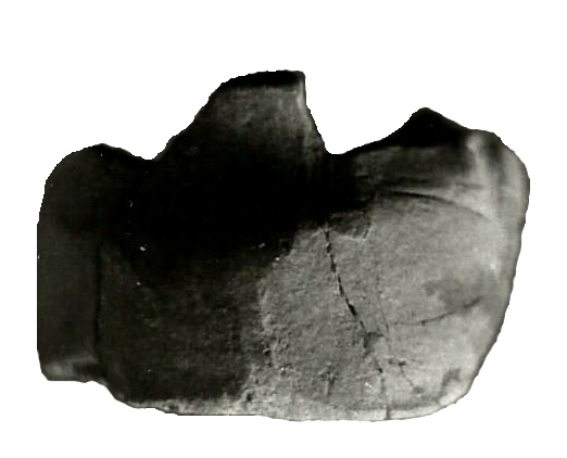 Altura: 3,6 cm. Es la parte superior izquierda de un gorro de mujer. Conserva como elementos decorativos las incisiones paralelas que cercaban todo el diseño del gorro. Puede tener relación con la figura 12.