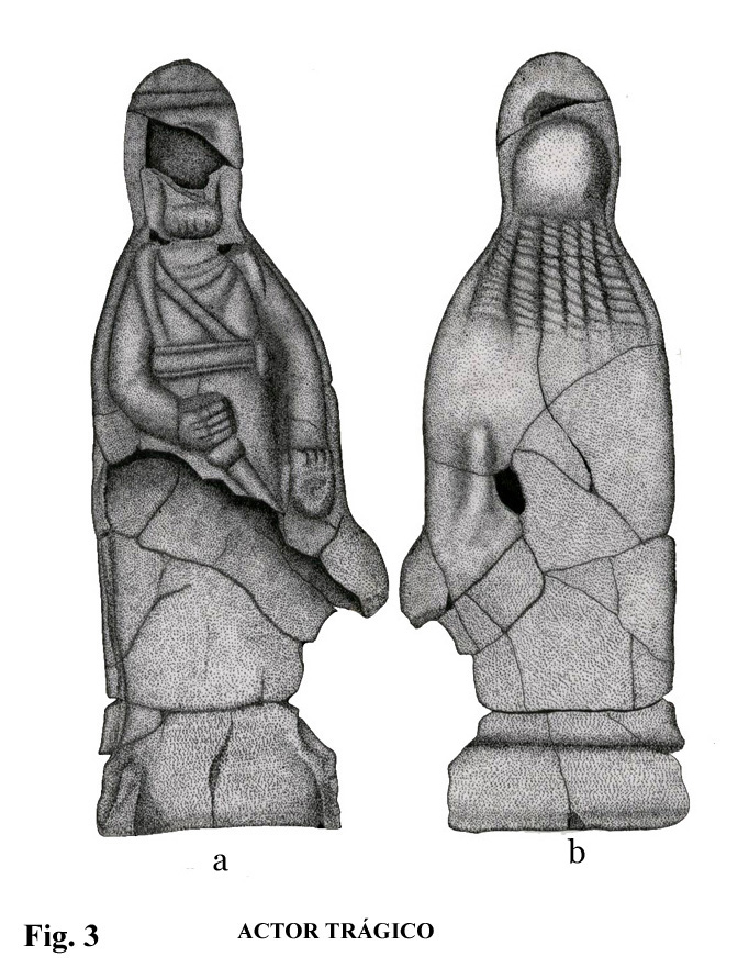La figura de actor (fig. 3), constituye una pieza única en la representación de un mito del mundo griego antiguo y mitológico. No conocemos, por ahora, nada que se pueda mostrar como paralelo.