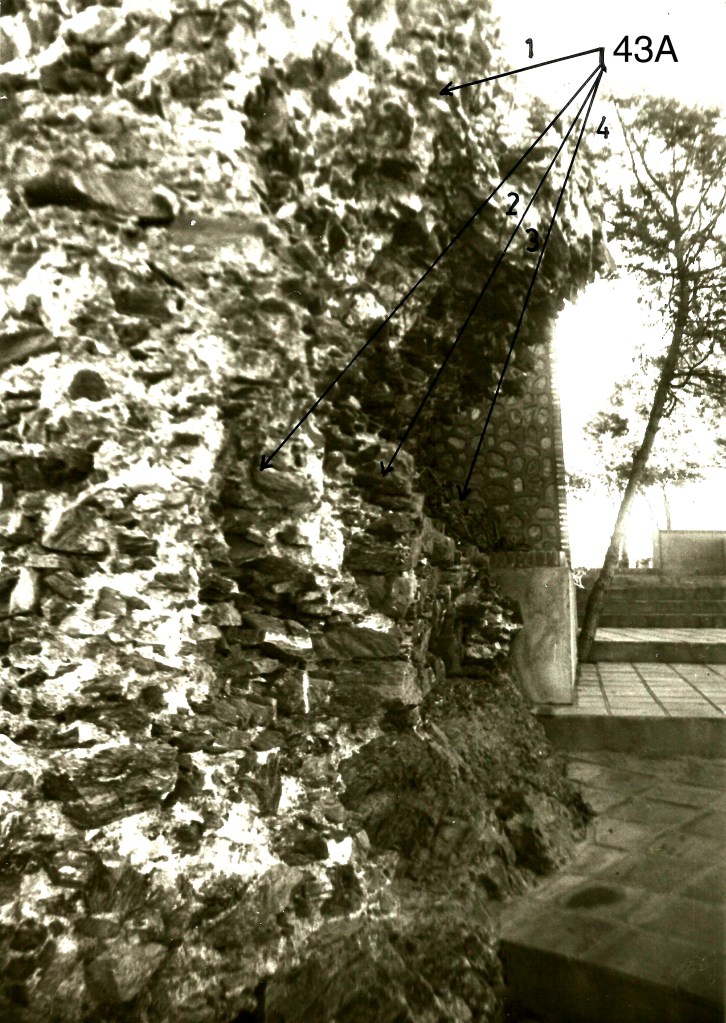Esta foto muestra sobre el mismo terreno, pero en espacio más reducido, el uso de la zona rota de galerías del área de Poniente. Todas las bóvedas han sido derribadas porque el empuje de la muralla posterior amenazaba con su peso el derrumbe de las mismas