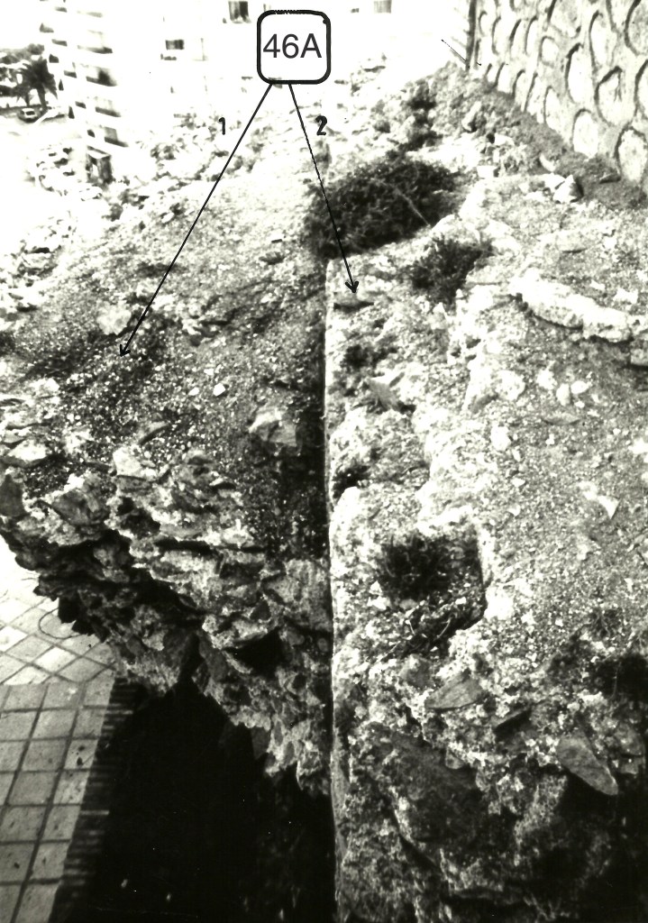 En esta foto de la misma galería se puede ver el taponamiento sin abrir del otro extremo de la galería; y se deja ver algo del opvs incertvm de su alzado. Tenemos que decir que esta galería se encuentra en línea con la que se ha descubierto recientemente en la Plaza del Ayuntamiento. En el espacio que media entre ambas galerías se han visto y destruido las naves intermedias entre las dos ya indicadas.