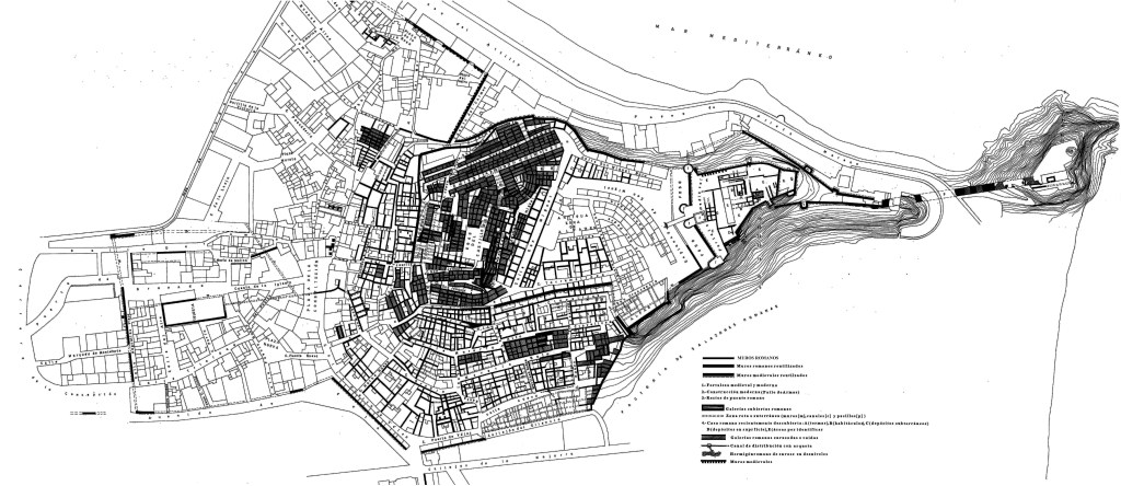 En definitiva, se puede decir que, cuando el elemento musulmán entra en esta localidad, se ve obligado a romper las estructuras romanas para poder ocuparlas, hecho que explica que aparezcan calles «modernas» tan tortuosas y quebradas. Se rompen series enteras de criptopórticos para poder construir «calles» donde no existían. Y las que vemos rectilíneas y paralelas son consecuencias de la eliminación de numerosas series de galerías para poder moverse por esos lugares. Testigos podemos ver cuando, al pasar por una de esas calles, aparecen, en los laterales, restos de los muros que conformaban las galerías; y no son pocos. Pero se sabe que existen otras galerías que continúan ocultas desde sus inicios, y que, alguna vez, podrán salir a la luz.