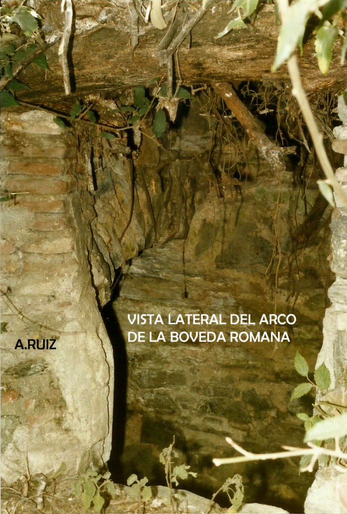 En esta foto se aprecia mejor la forma del arco árabe; pero se nota que la estructura romana ha sido retocada en la remodelación del mismo. Conserva, como todas las galerías, el agujero del techo, que aparenta ser una luminaria.