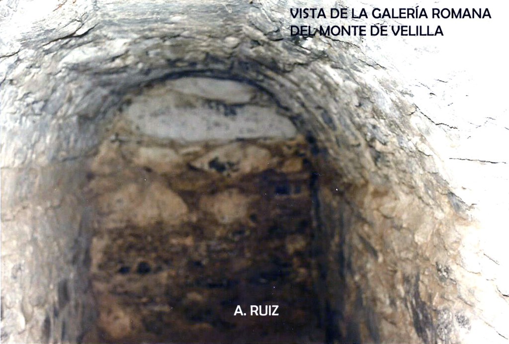 Monte de Velilla. Esta pequeña galería es de pequeñas proporciones y contiene revestimiento de encalado. El aparejo es el clásico de estilo dominante romano.