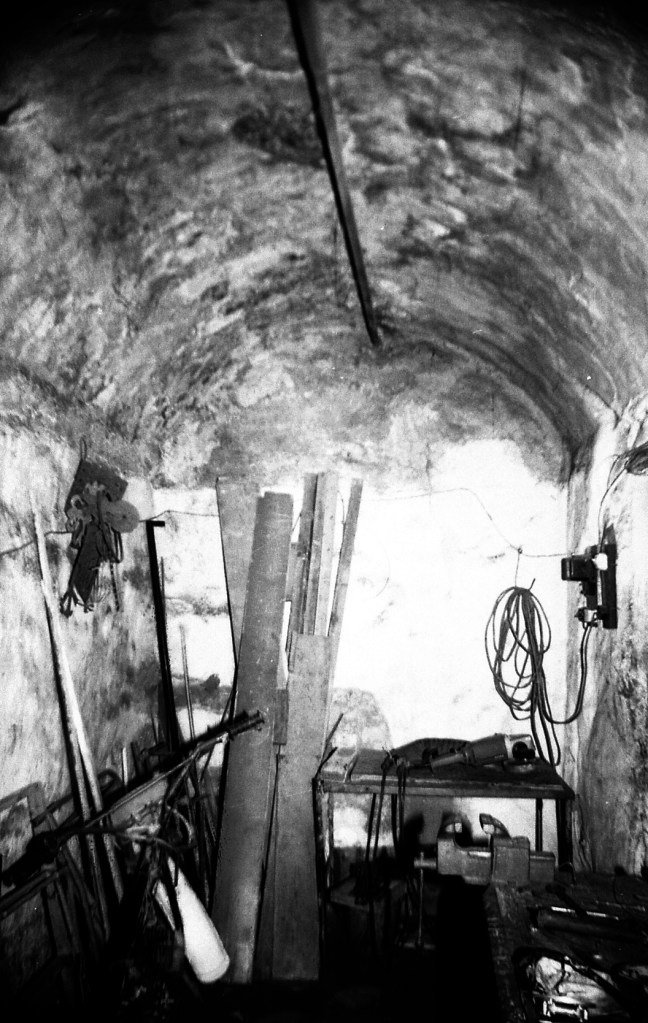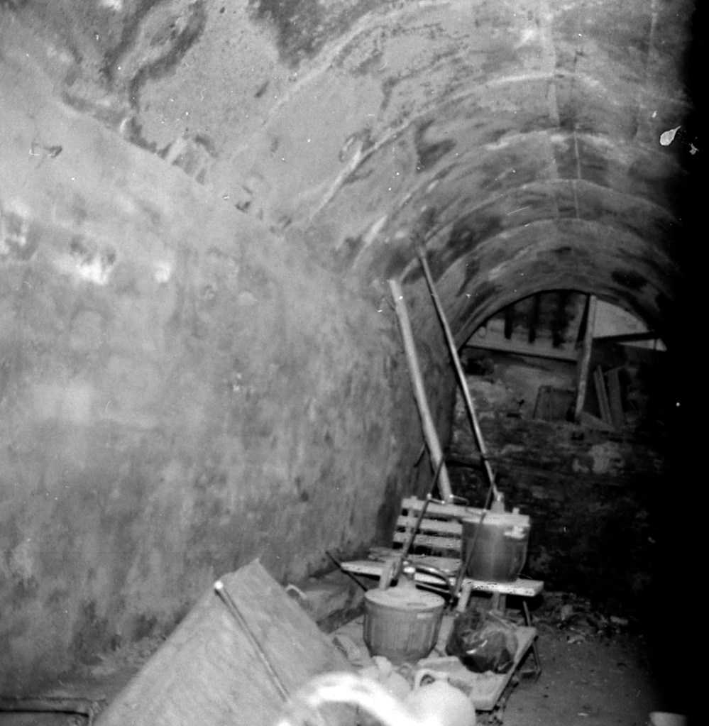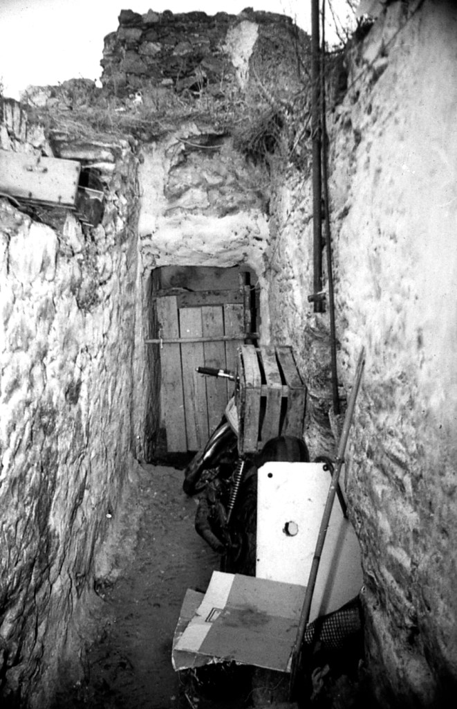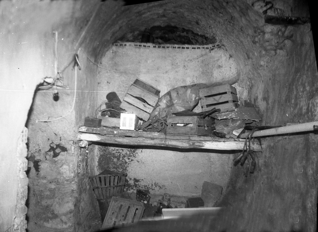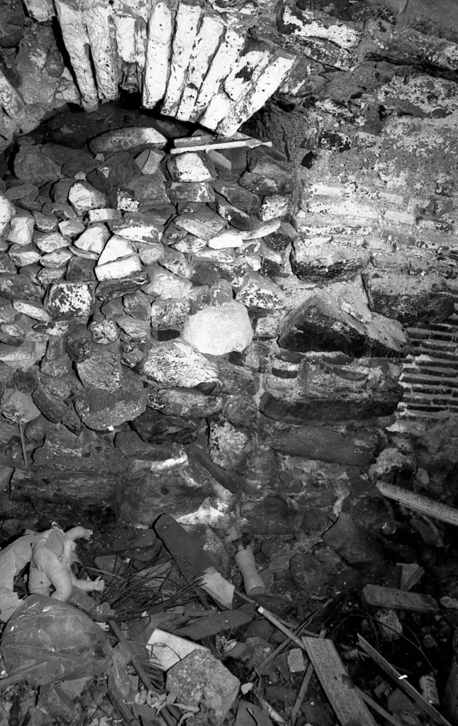 En este sector, M, casi al final de la calle Antigua, nos encontramos con una serie de galerías modificadas y convertidas en vivienda. En esta foto, habiendo roto espacio para acceder a ellas, tenemos de frente, a derecha e izquierda, el acceso a todas las estructuras aquí conservadas. Las que mostramos son las que ofrecen mayor identificación. Esta entrada ya está muy modificada.