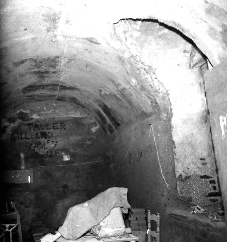 Plaza del Ayuntamiento. Galería de los Müller. Nave-galería en fase de restauración moderna. A derecha se ve una abertura tipo hornacina similar a otras naves del área Eras del Castillo. Es una de las más grandes que se han localizado en la ciudad.