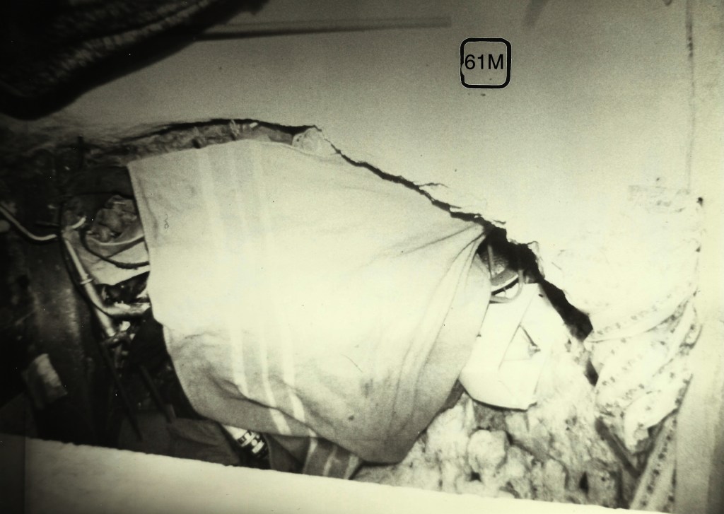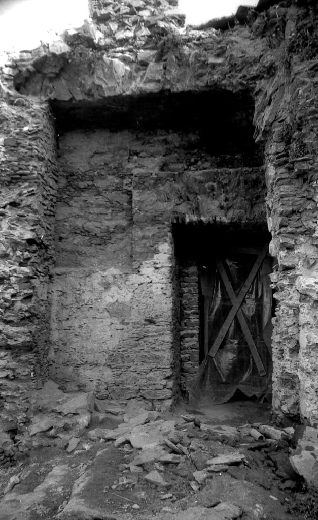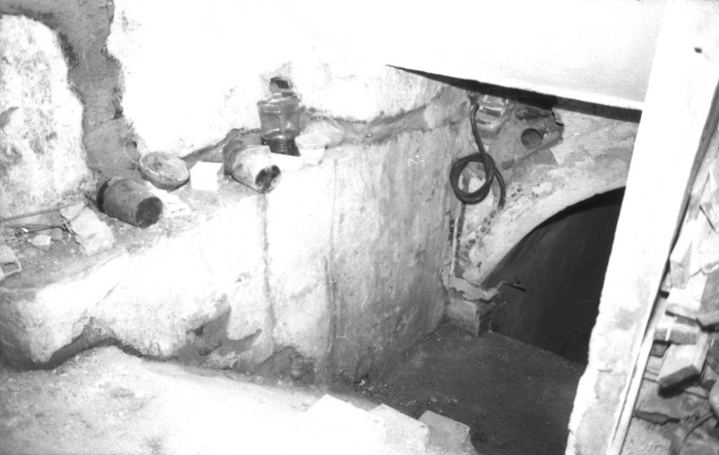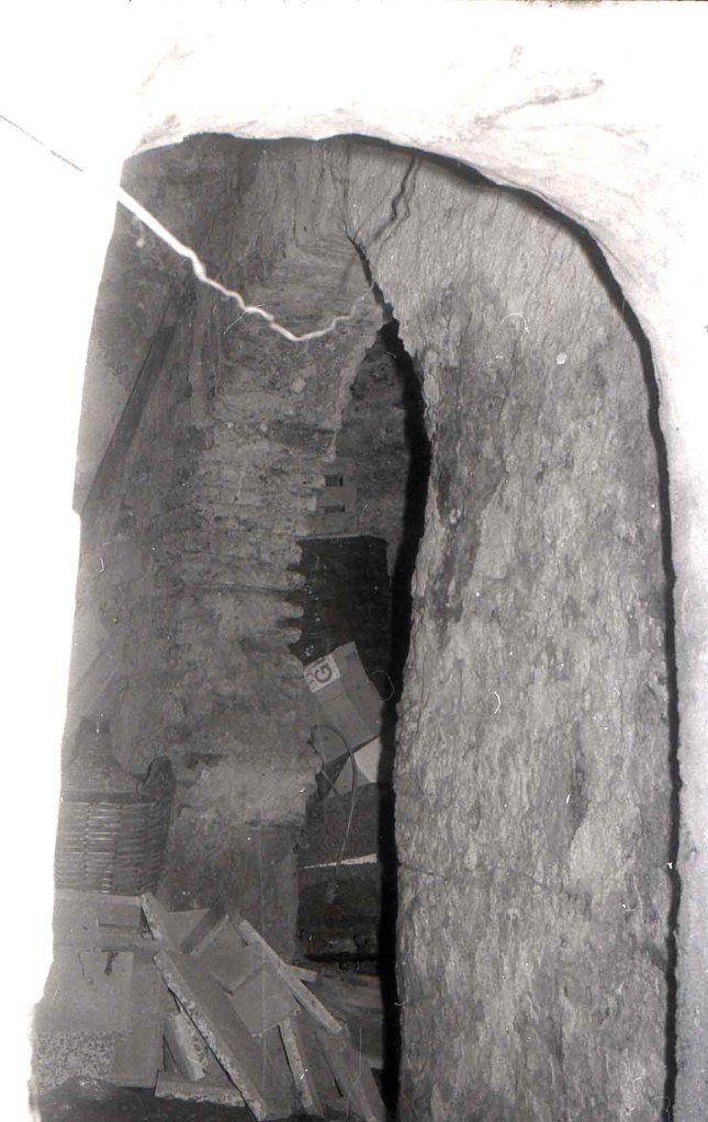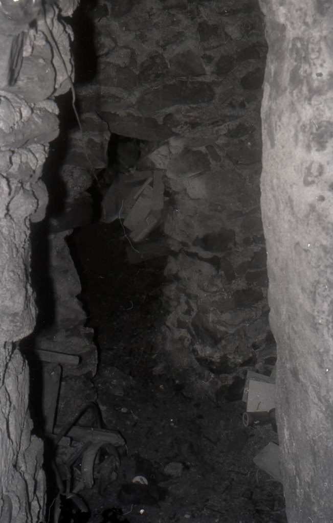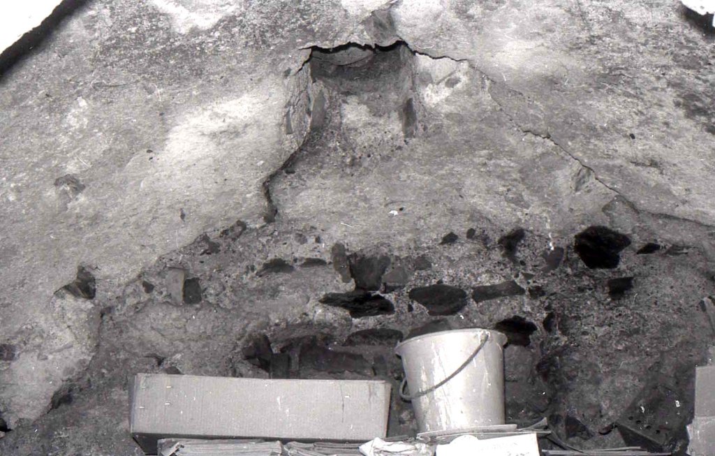 Foto de detalle más amplio. La puerta fue abierta a golpe de pico como se puede apreciar. El aparejo aparece roto a golpes de pico.