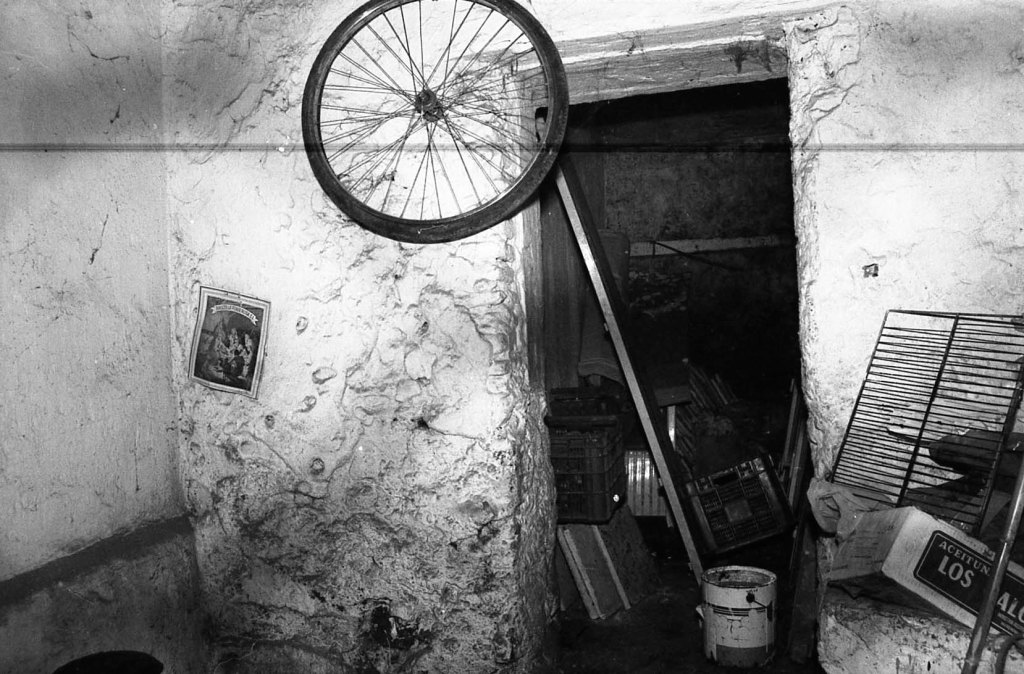 Esta foto muestra otra pieza convertida en habitáculo. Son series de galerías transformadas en taller de trabajo, pero sus techos han sido destruidos para poder levantar encima nuevas piezas de casa moderna.