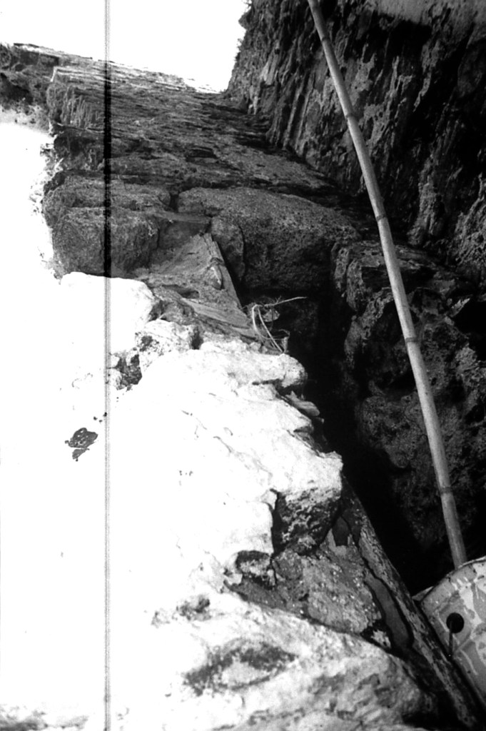 Y este es el final de lo que hoy queda como punto de acceso a la red de galerías que se acaban de describir. Es curioso observar la altura de los escalones de acceso. Ello indica que la altura, por defecto de solería de las galerías, que no tenían suelo artificial, sino sólo roca madre, tuvo que ser rellenada de forma artificial para equilibrar las diferencias de alturas entre las distintas galerías.