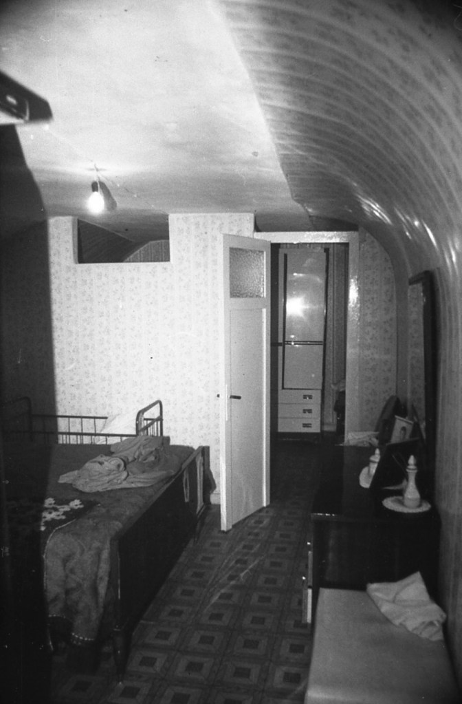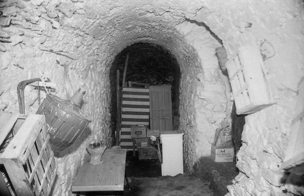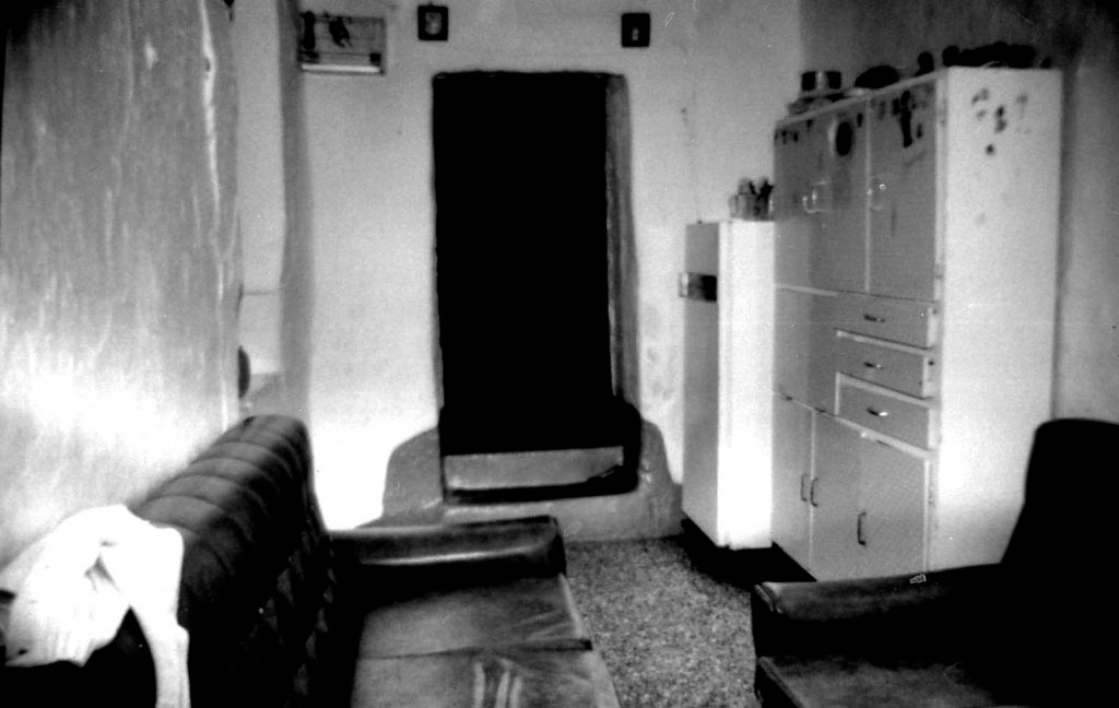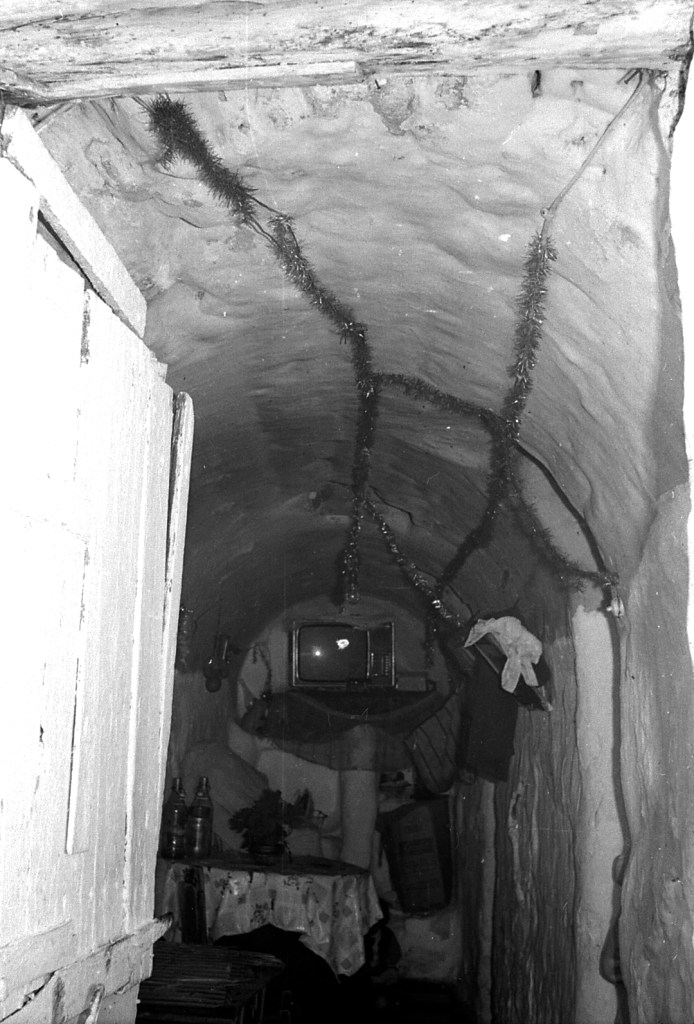 En esta foto podemos ver una galería con la bóveda recubierta de chapa de madera, al igual que sus paredes. Forma parte de un conjunto muy numeroso de «cuevas» y que se verán enseguida. Sus proporciones son similares a la gran mayoría de las que se encuentran en esta zona. Todas las viviendas modernas están montadas o ocupadas desde que se conoce su existencia.