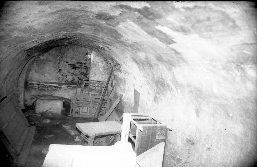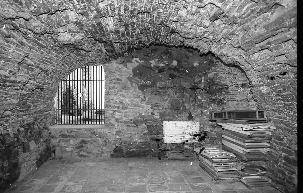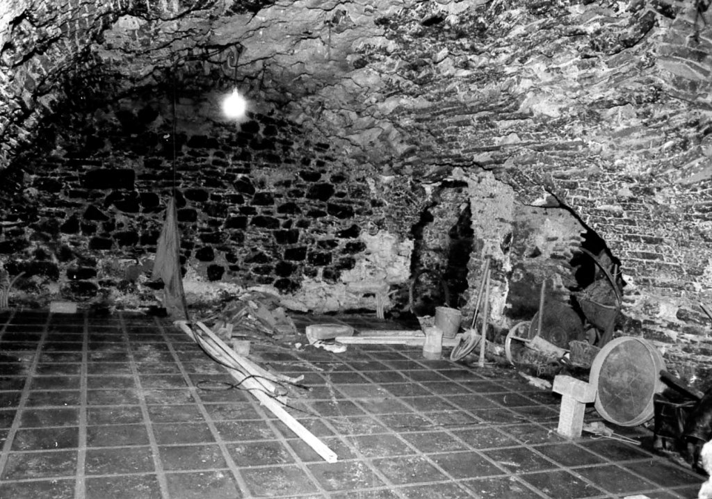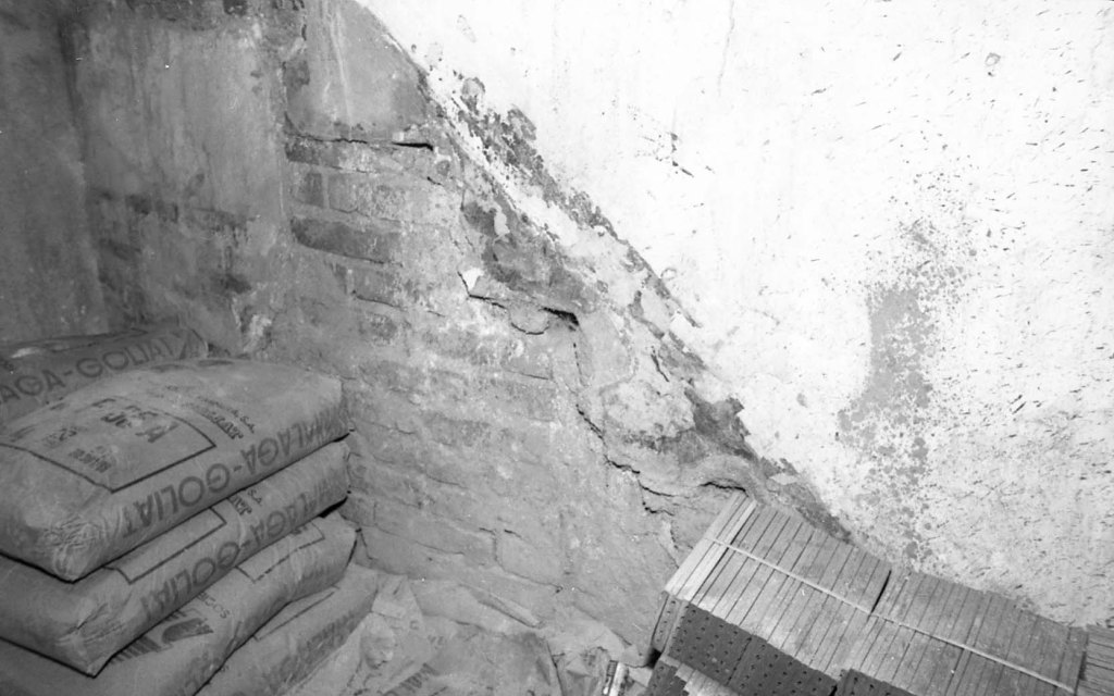 Nuevo descubrimiento de nave en el centro de la ciudad. Se trata de una nave de proporciones similares a la Cueva de Siete Palacios, pero sólo con dos naves pequeñas laterales que lindarían con las estructuras bajas de la calle posterior Escamado. Vista tomada desde el interior de la casa de los Müller.