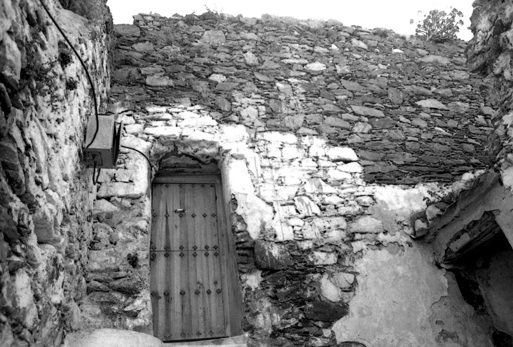 En una puerta anterior a la nave antes vista, nos aparece esta, muy similar en su estructura, pero también muy recargada por la cal usada para su mantenimiento. Aquí se observa que ha sido usada como apero de elementos agrícolas.