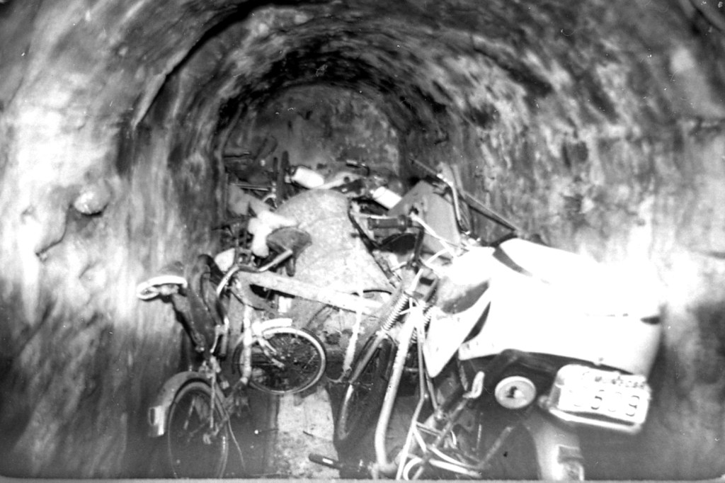 Criptopórtico Cueva de Siete Palacios. Foto de detalle donde se aprecian los restos de gran número de naves rotas por las razones antes expresadas. Su profundidades son distintas como se verá en la planimetría. Prácticamente todo este Sector ha sido habitado por gente en diferentes épocas.
