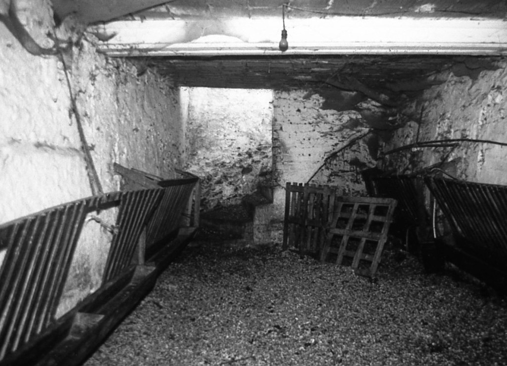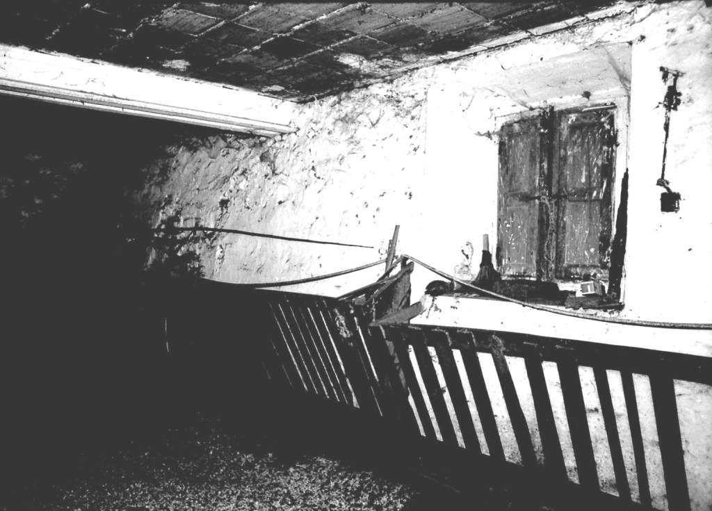 Esta foto, de la misma nave, se ve partida por un nuevo muro construido para la sujeción del torreón que se encontraba encima de la misma. Y parte de la otra mitad de la nave se puede ver en las fotos del Sector San Joaquín III, al fondo, con entrada incluida. Pero, desgraciadamente ha desaparecido por la construcción de una nueva vivienda sobre ese espacio.