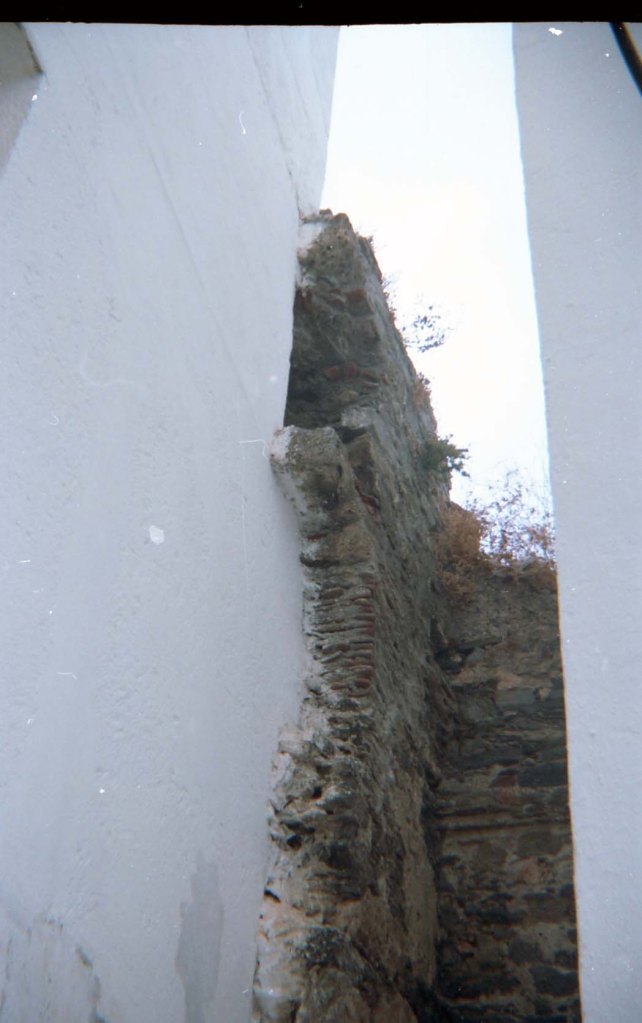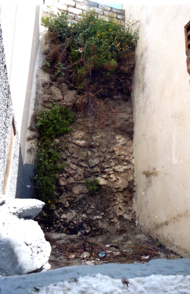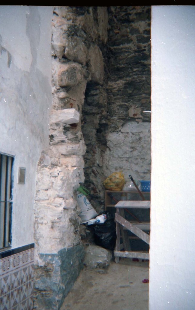 Sector calle San Joaquín III. en el interior de esta casa podemos ver una especie de arco profundo que parece indicar que servía para pasar de un lado a otro de la muralla que asciende desde un extremo de la cueva de siete Palacios. La muralla ha perdido un muro superior de opvs incertvm.