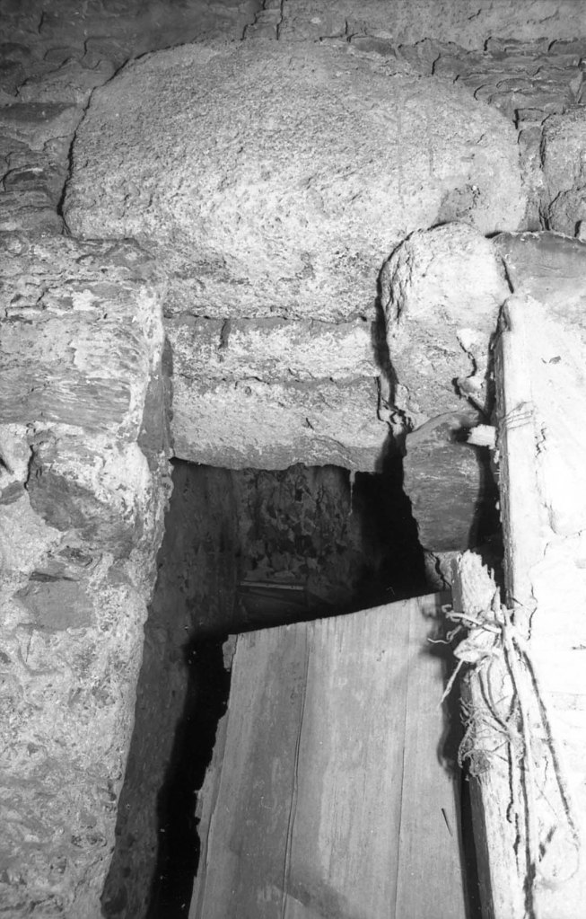 Foto de detalle del umbral de la puerta, con un sillar situado sobre la misma.