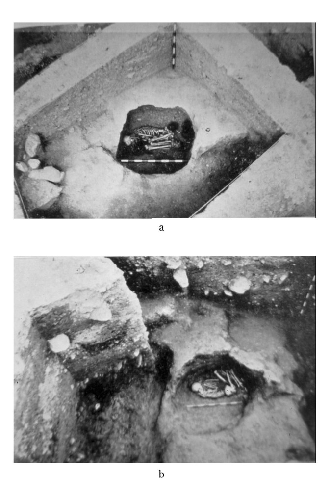 El ajuar aparece en cabecera y pies del cadáver.
