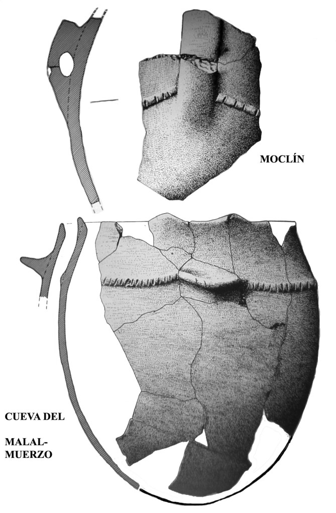 CUEVA DE LOS MURCIÉLAGOS. ALBUÑOL. Fragmentos de cerámica incisa y excisa.