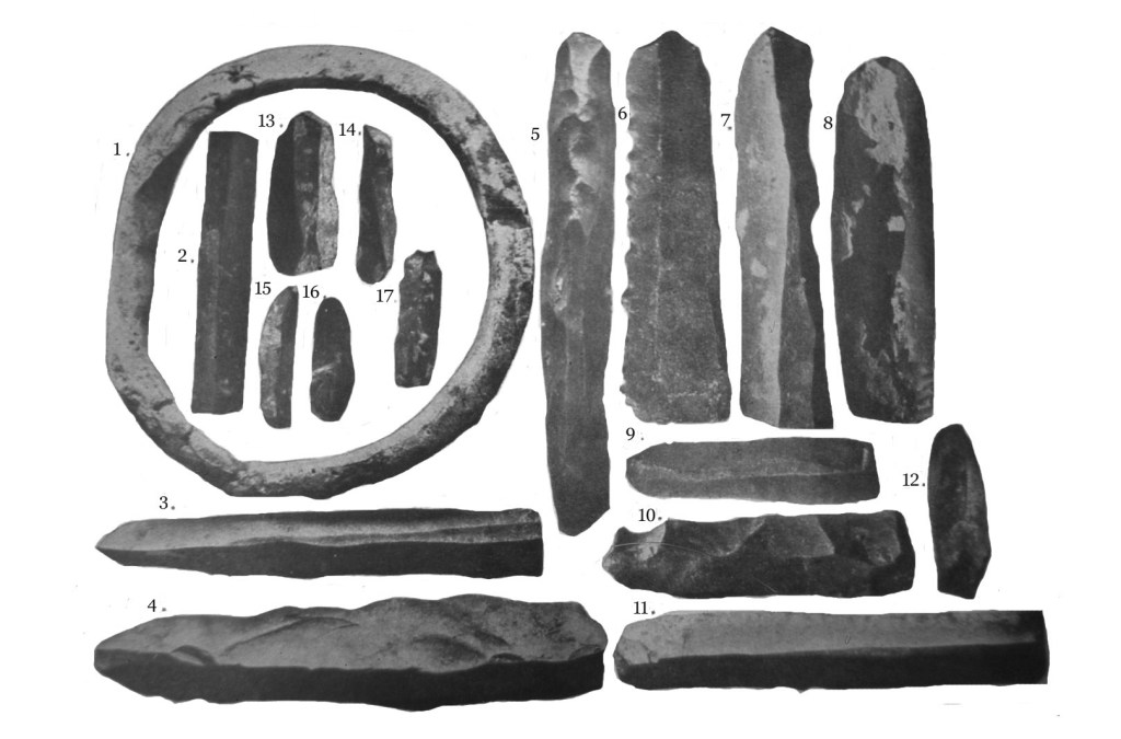Útiles de talla laminar: raspadores y hojas de piedra.