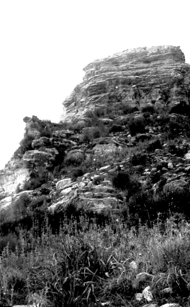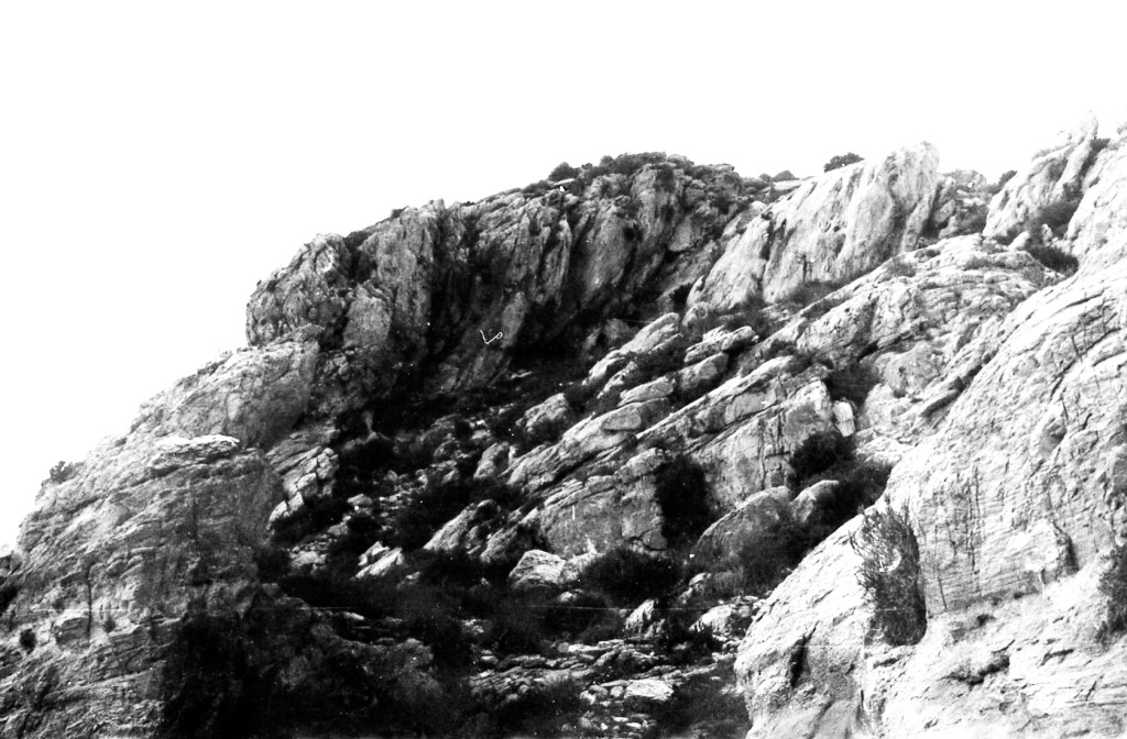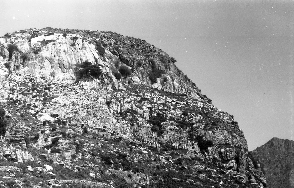 Foto 9.- En esta foto se quiere destacar lo escarpado del monte para constituir un valladar defensivo. Casi es imposible acceder a la cima a través de esta estructura rocosas y casi sin vegetación.