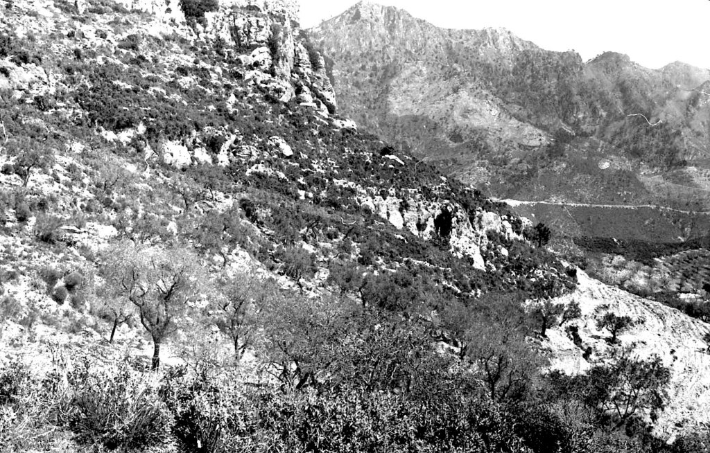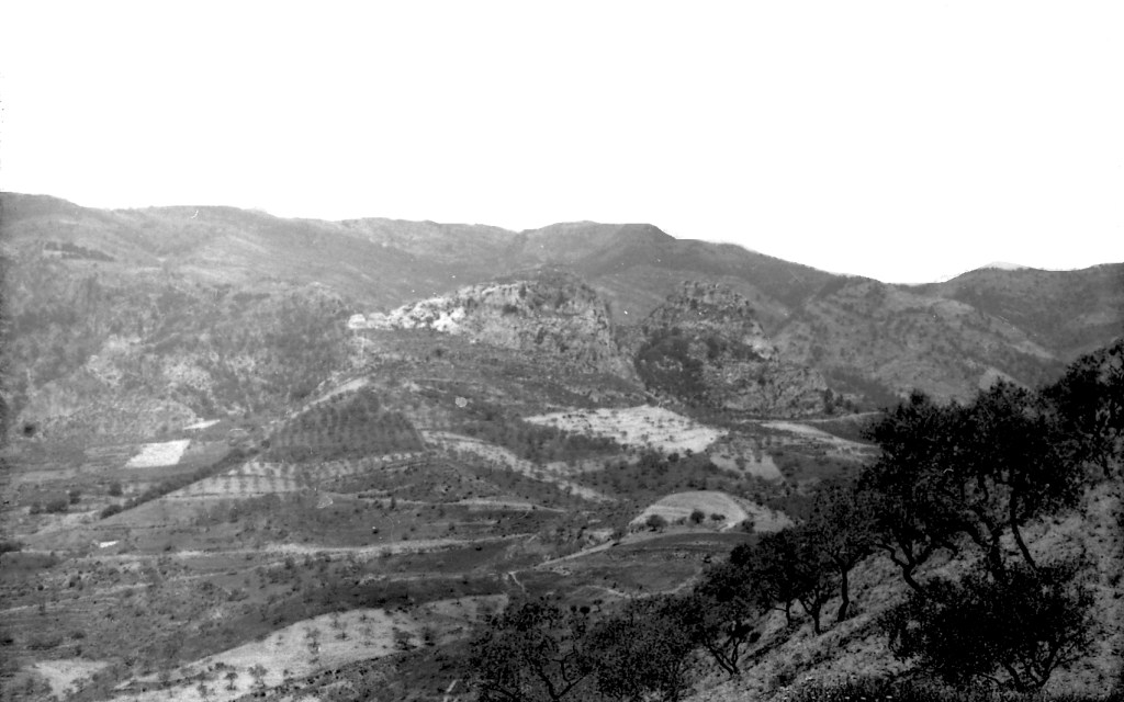 Foto 12.- Esta imagen muestra ya un paisaje algo más apropiado para ser utilizado como terreno aprovechable para el cultivo, pero sigue siendo de secano. Suponemos que la parte arbórea es relativamente reciente
