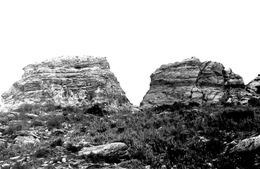 Foto 20.-Entre estas dos crestas de piedra se encontraba la necrópolis, parte la más elevada de todo el conjunto defensivo. A partir de aquí, y siguiendo en sentido descendente, empiezan a aparecer los restos de vivienda, como más adelante se va a mostrar.