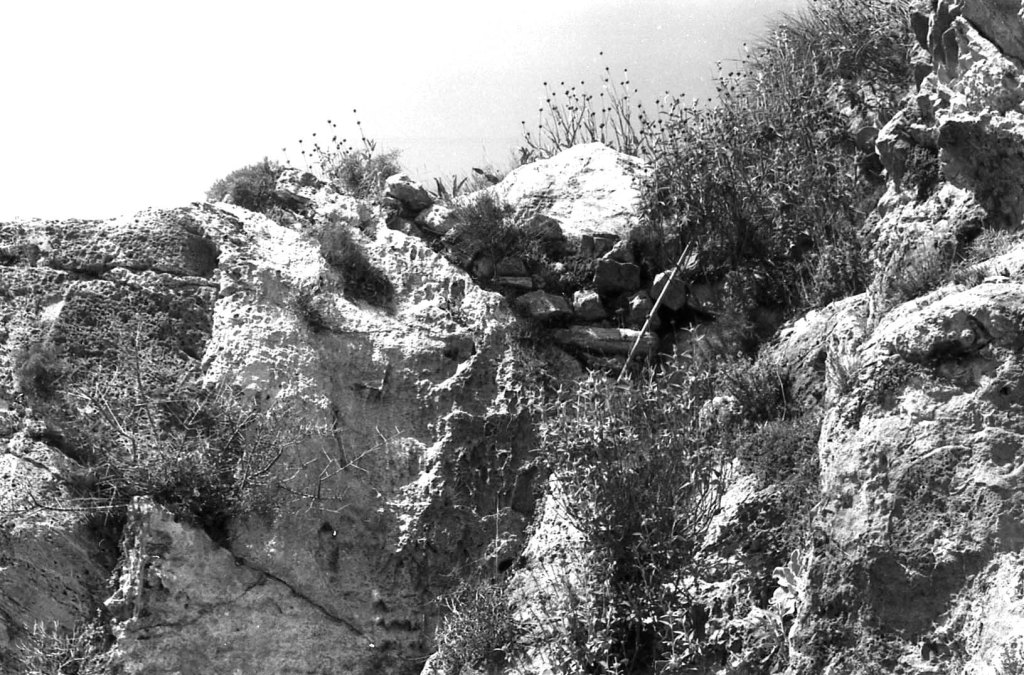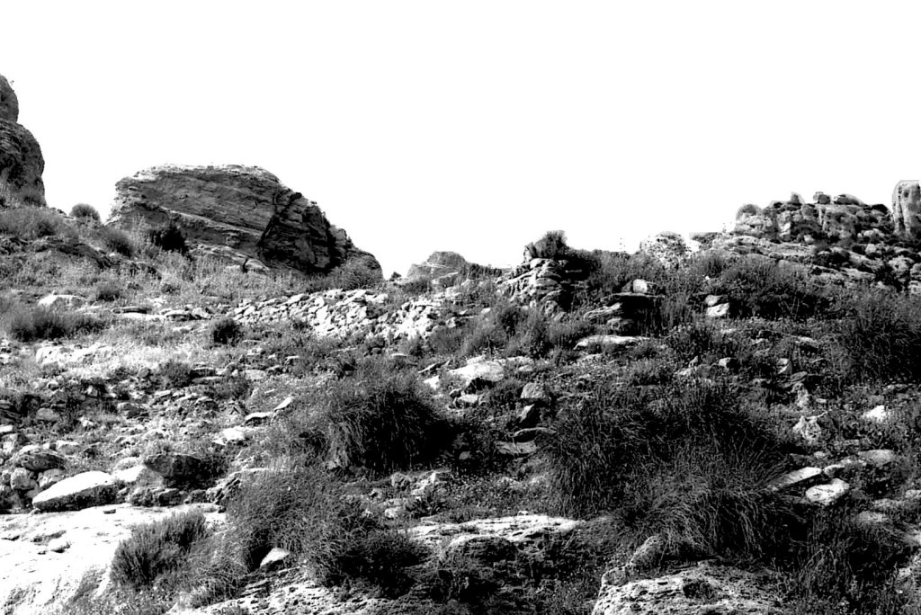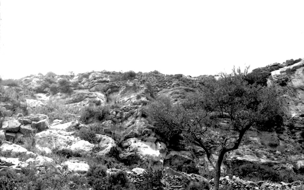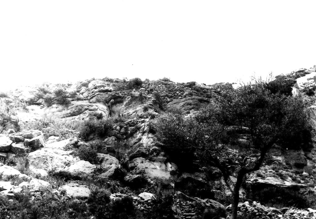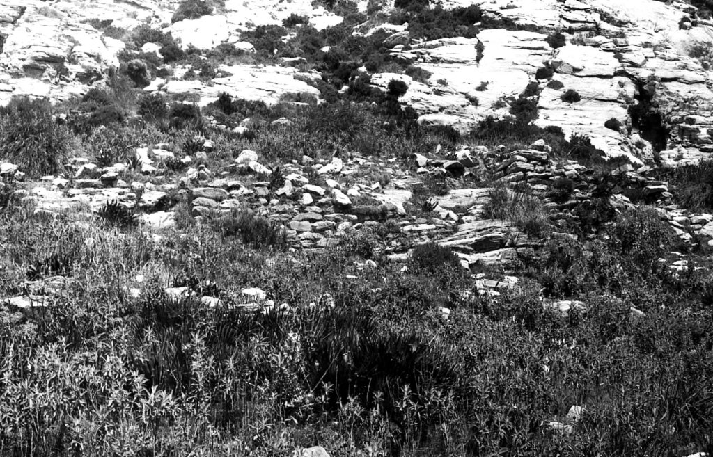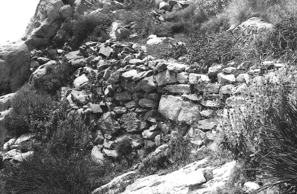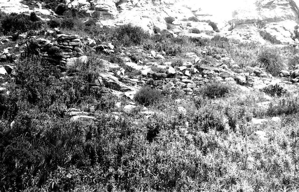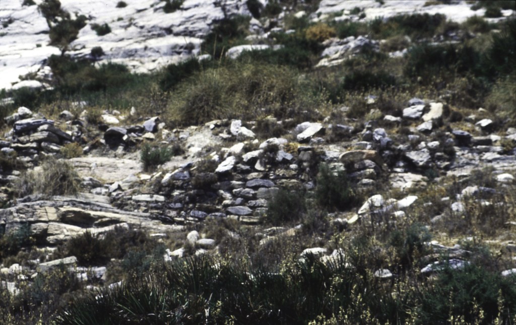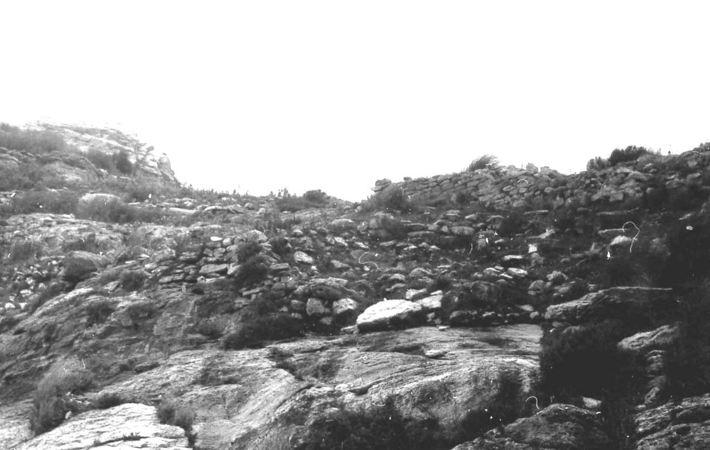 Foto 42.- En el terreno en rampa, desde donde se vio el cementerio árabe, empezaron a levantarse muros y elementos domésticos al amparo de las corriente del viento que se generaban en estas alturas (524 m).