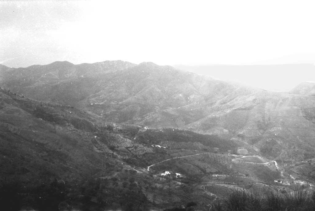 Foto 10.- En esta foto se quiere destacar un terreno poco dado a la agricultura y que se encamina hacia el valle que a continuación se observa en el horizonte izquierdo, con montañas también rocosas y escarpadas.
