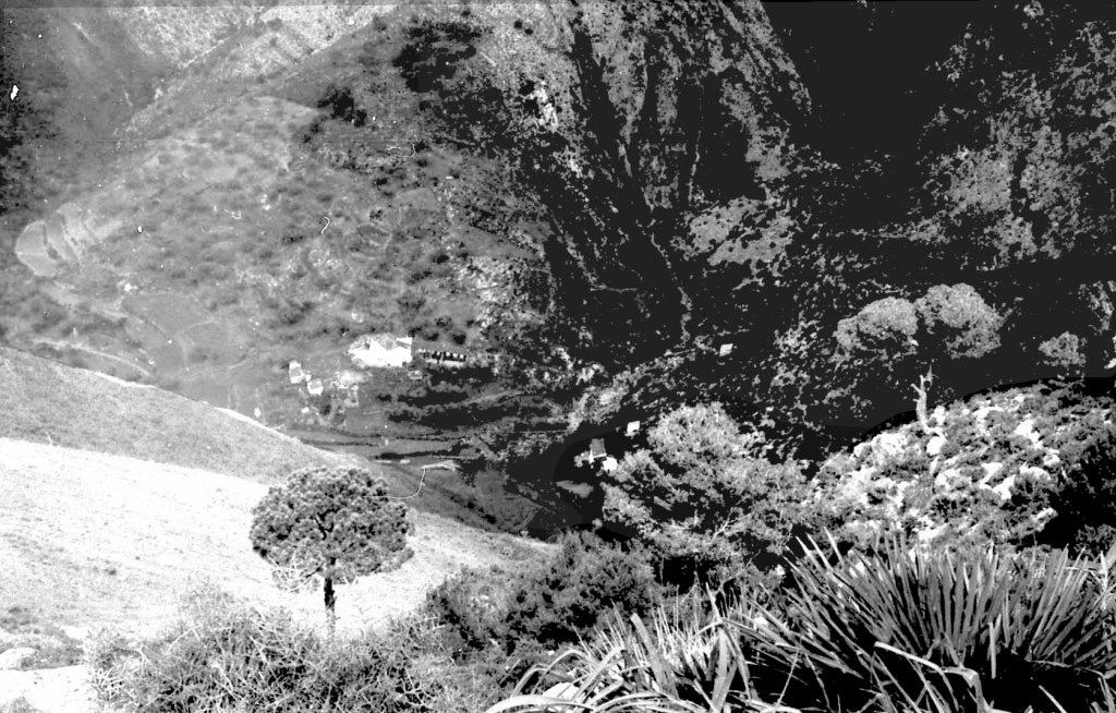 Foto 3.- En esta foto podemos contemplar uno de los pasos más importantes que atraviesan este control. Desde la cumbre se aprecia perfectamente la costa. Para eludir esta vigilancia era preciso aprovechar los días de neblina o taró, que hacía imposible ver los movimientos marítimos tan importantes en todos los tiempos. Las tropas militares tenían que realizar sus marchas aprovechando esas circunstancias para evitar ser vistos y pasar desapercibidos.