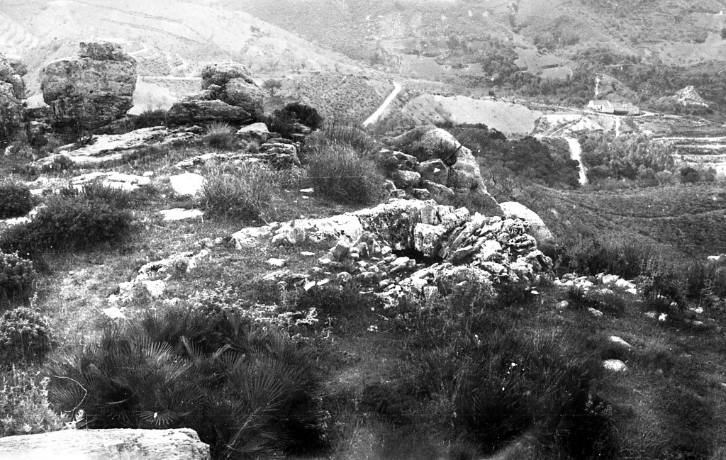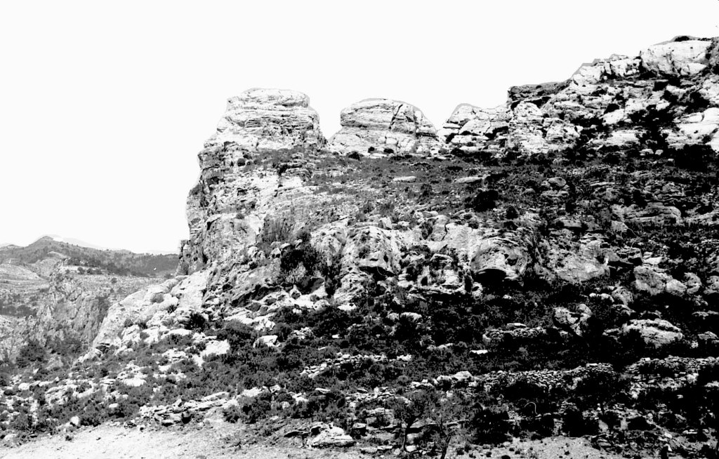 Foto 28.- Otra perspectiva de los laterales de estas paredes de piedra donde se aprecian los muros casi desmontados o bien por los vecinos actuales o por la erosión, o tal vez por las luchas que se mantuvieron en época de revueltas de los árabes entre ellos mismos.