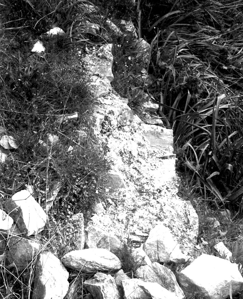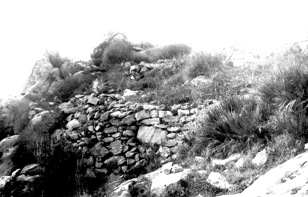 Foto 32.- Tal como se indica en la foto, tan sólo podemos hablar de restos de muros, pero no de balates de piedra como en los hasta ahora vistos, sino de mampostería de piedra y argamasa.