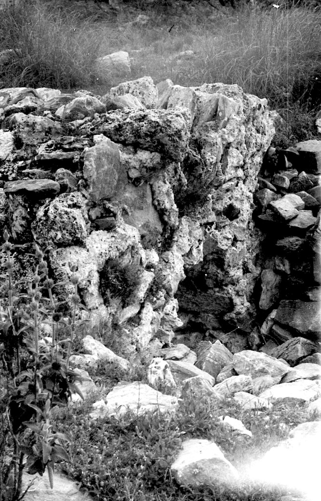 Foto 64.- Esta foto se hizo al principio de mis contactos con este yacimiento. Su estado de conservación deja que desear. No es tan homogéneo como el aspecto de la siguiente foto. Se encontraba más deteriorado. El enlucido de sus paredes se encuentra en peor estado. Aparenta que ha sido retocado posteriormente. Hace más de 40 años que lo examiné. No es de extrañar que lo hayan restaurado.