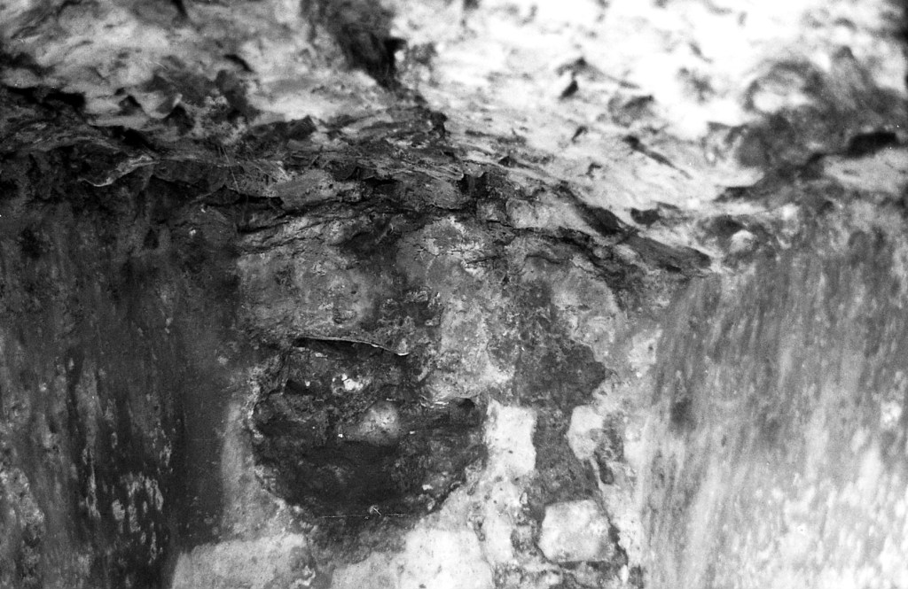 Foto 75.- Imagen del estado primitivo, según nuestros cálculos, del estuco en el interior del aljibe.