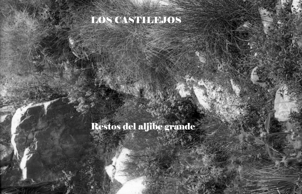 Foto 1.- En las proximidades de las faldas de la zona más elevada del espacio conocido como LOS CASTILLEJOS, podemos ver los restos de un torreón reforzado y a los pies del tajo de roca. Por debajo se encuentran los restos de las viviendas derruidas por el tiempo y los pillaje y saqueos que se venía practicando desde tiempos atrás. A los pies, se encuentran las ruinas de las casas derruidas sobre todo por el abandono desde que esta esta zona pasó a ser parte del Reino de Granada.