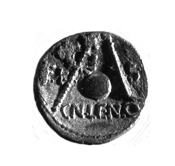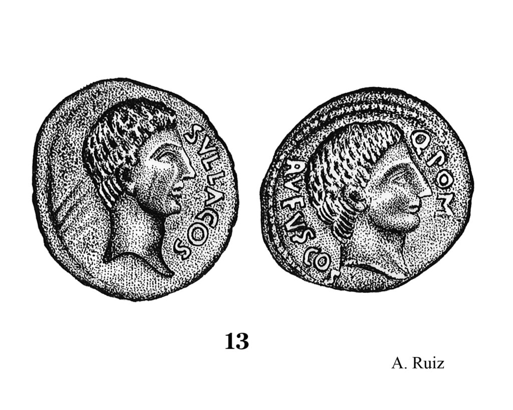 Esta moneda presenta la cabeza de Sula y la de Pompeyo Rufo, cónsul en el año 88 a. de C. Pero, probablemente, esta moneda fue acuñada algunos años después.