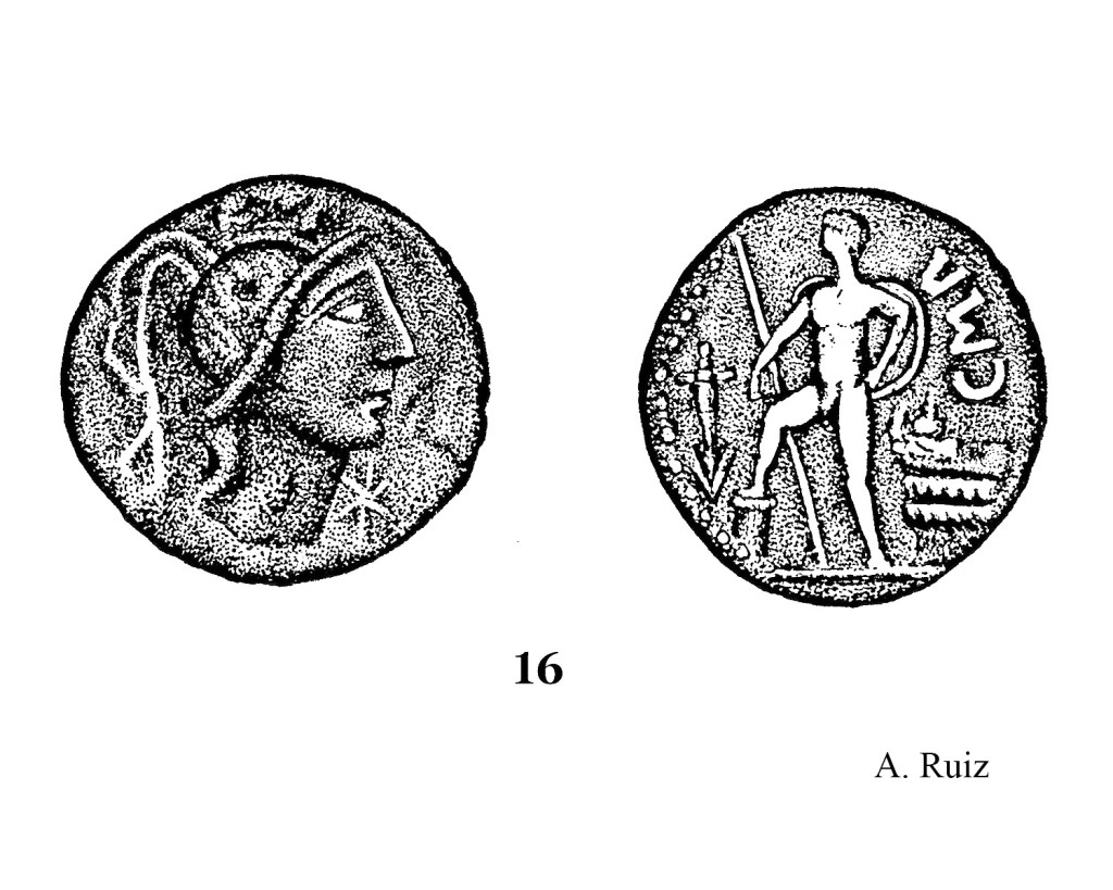 La moneda nº 16 fue acuñada por el cuestor y monetario Marco Lucilio Rufo, años después, tribuno de la plebe.