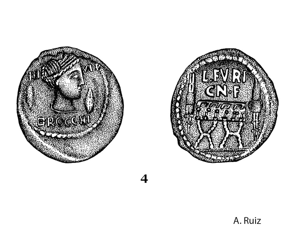 La moneda nº 4 por la leyenda L. FVRI se puede deducir que la fecha de acuñación fue en el año 136 a. de C. tras la derrota de los galos ligures por Gayo Flaminio Nepos.