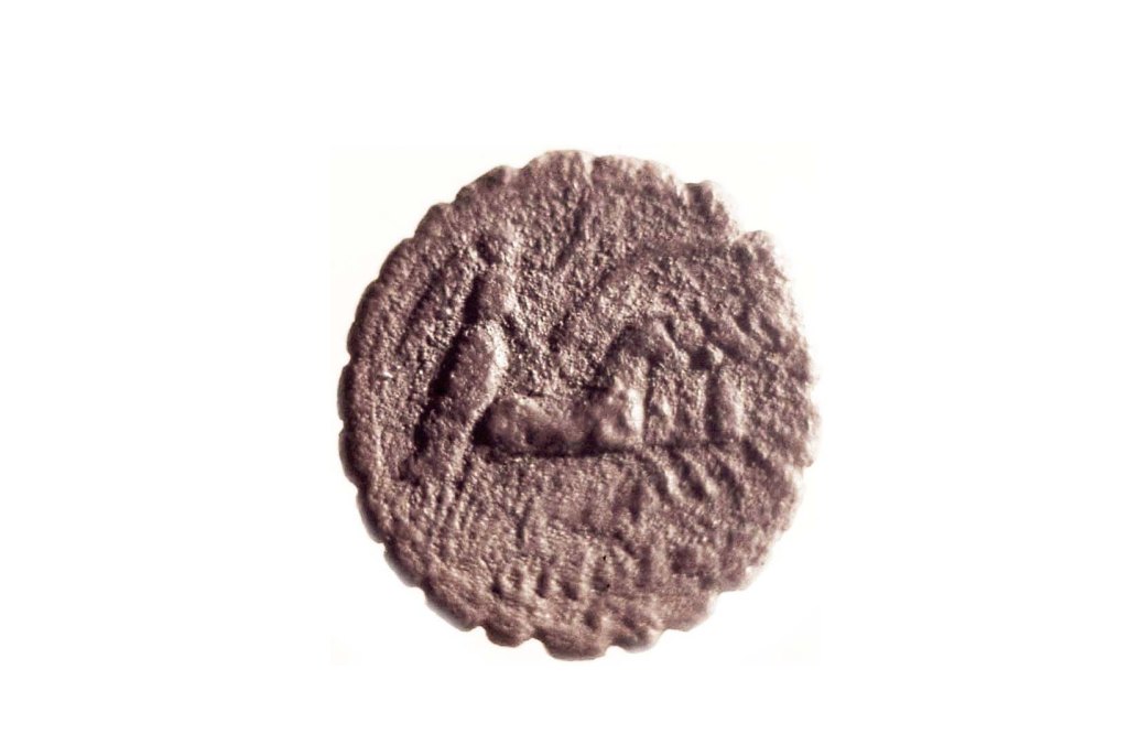 Las marcas que se observan en este ejemplar no han ayudado a su identificación, aunque se observan detalles de lo que puede ser una jinete en cuadriga.