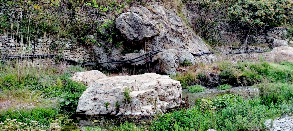 Foto 1. Peñón Rodado y su entorno en el lecho de río Verde en Otívar.