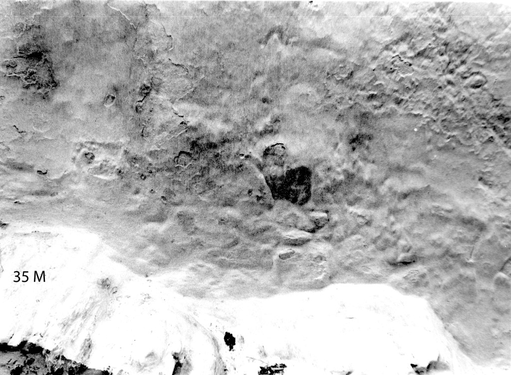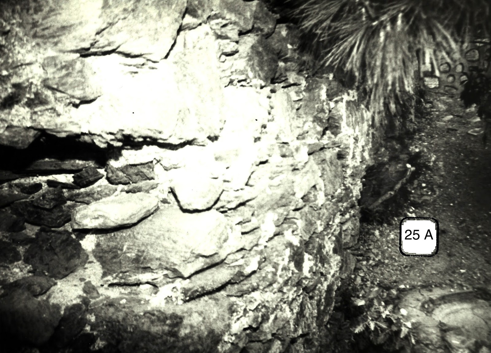 Foto 2.- En esta imagen se observa la delimitación entre la zona B de las excavaciones oficiales y su dirección hacia la cresta superior donde, al parecer, en tiempos pasados aparecieron elementos poco corrientes en tipología de enterramiento. Debajo de un chalet de la parte superior, cuando se hicieron los cimientos, se descubrió, según cuentan los antiguos propietarios, un enterramiento de dimensiones superiores a todos los hasta ahora conocidos. Y probablemente, los materiales de una probable construcción de monumento funerario, tenga que ver con los restos encontrados en este espacio que mostramos. Es muy probable que tenga que ver con ello. De la hipótesis se puede pasar a la verdad o tesis. Pero no estamos del todo seguros y podría ser material de una tumba monumental existente en este mismo terreno.