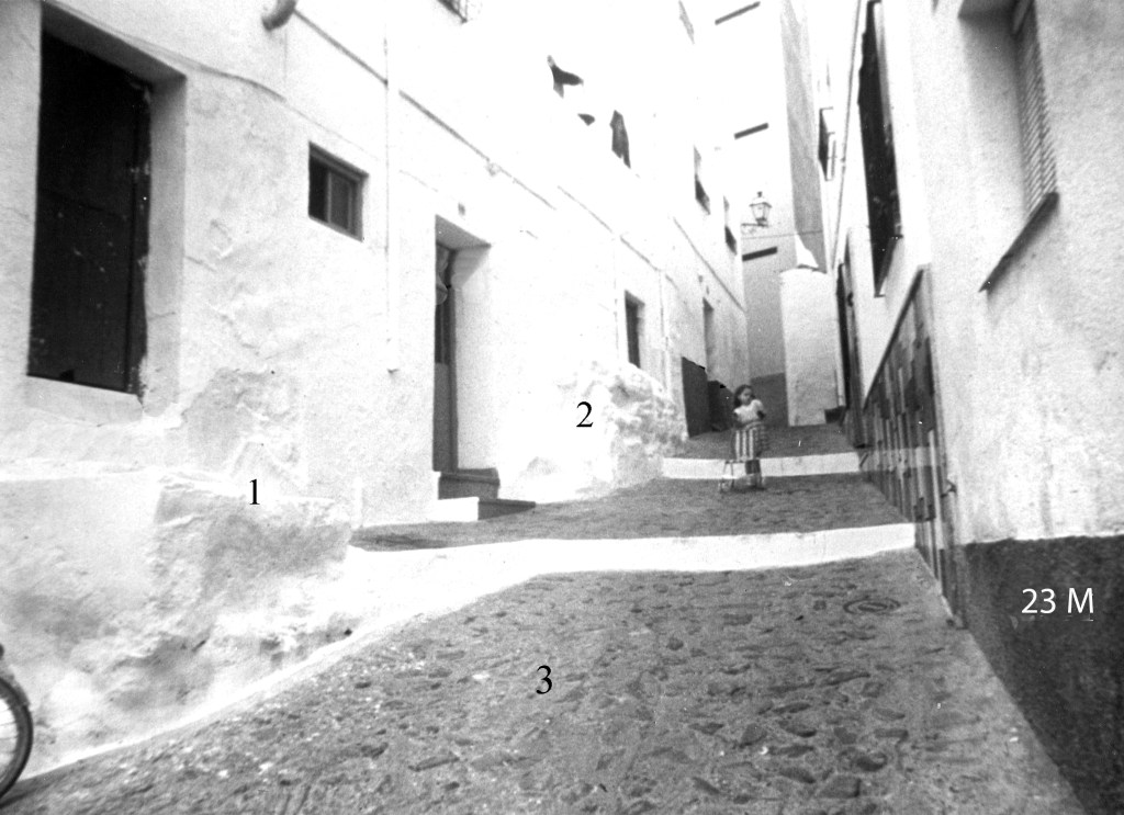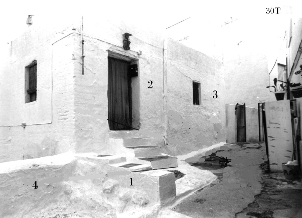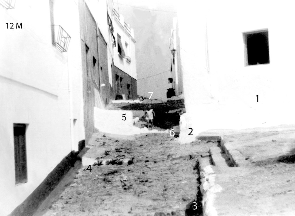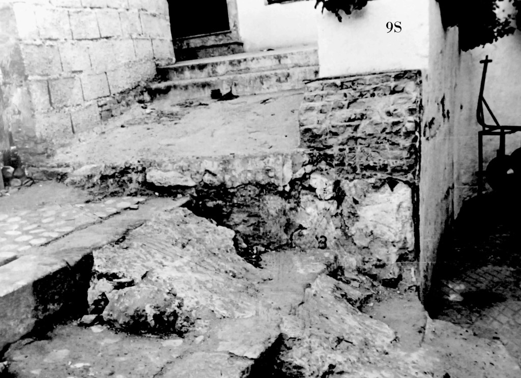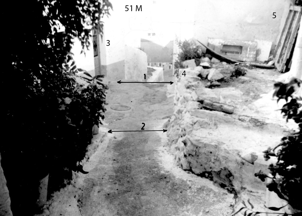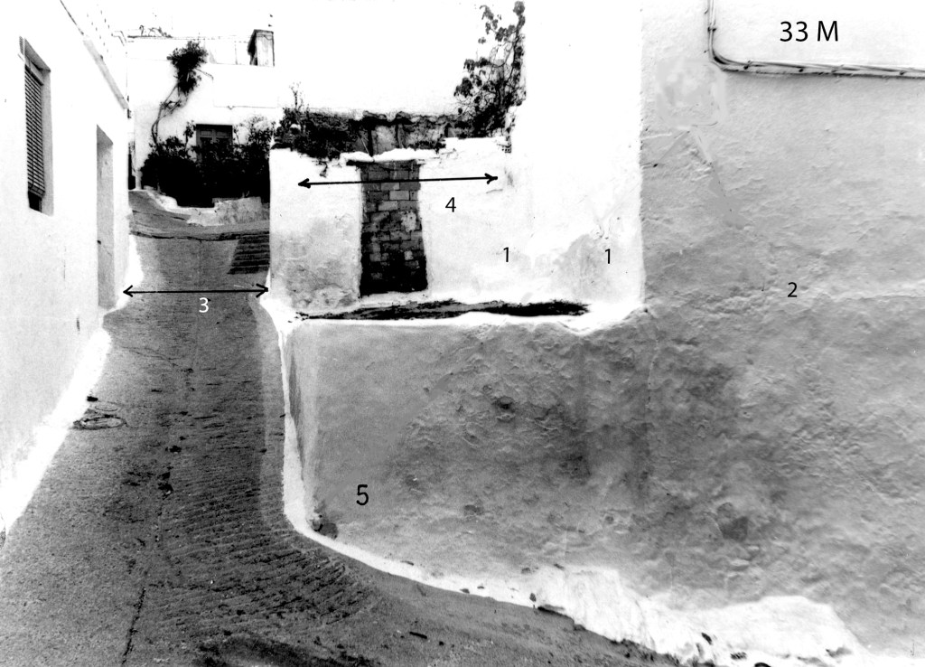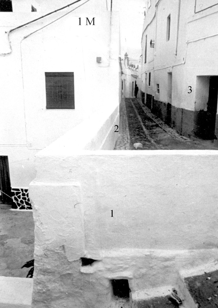 Este dibujo puede servir de ejemplo para afirmar que debieron existir tumbas con monumentos funerarios cubriendo la sepultura. Quiero recordar que los sillares abundaban apilados junto al muro de la finca conocida como La Cerca. Después, probablemente fueron reutilizados en casas nuevas que se construyeron en sus cercanías; y otros sillares podían proceder de la tumba con dromos (4C), porque este elemento funerario está construido de sillares, de los que faltan gran cantidad.