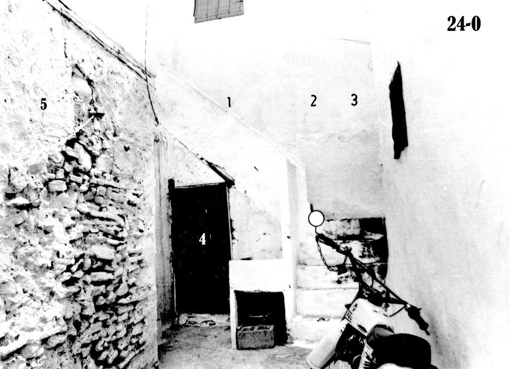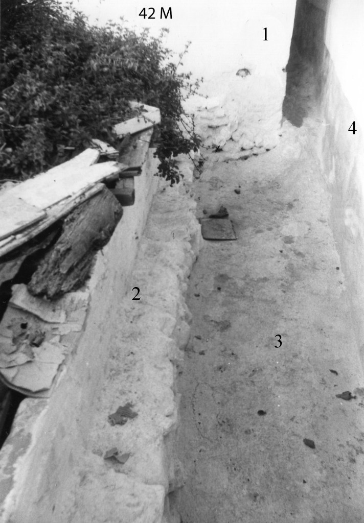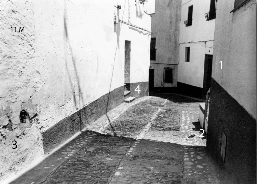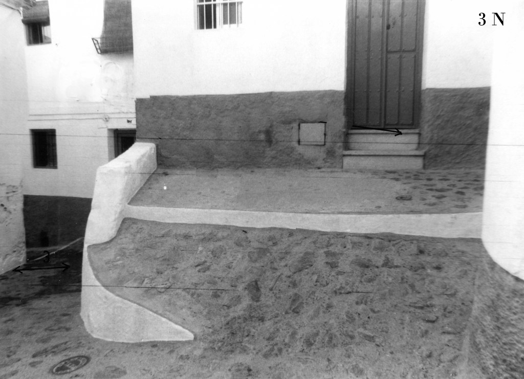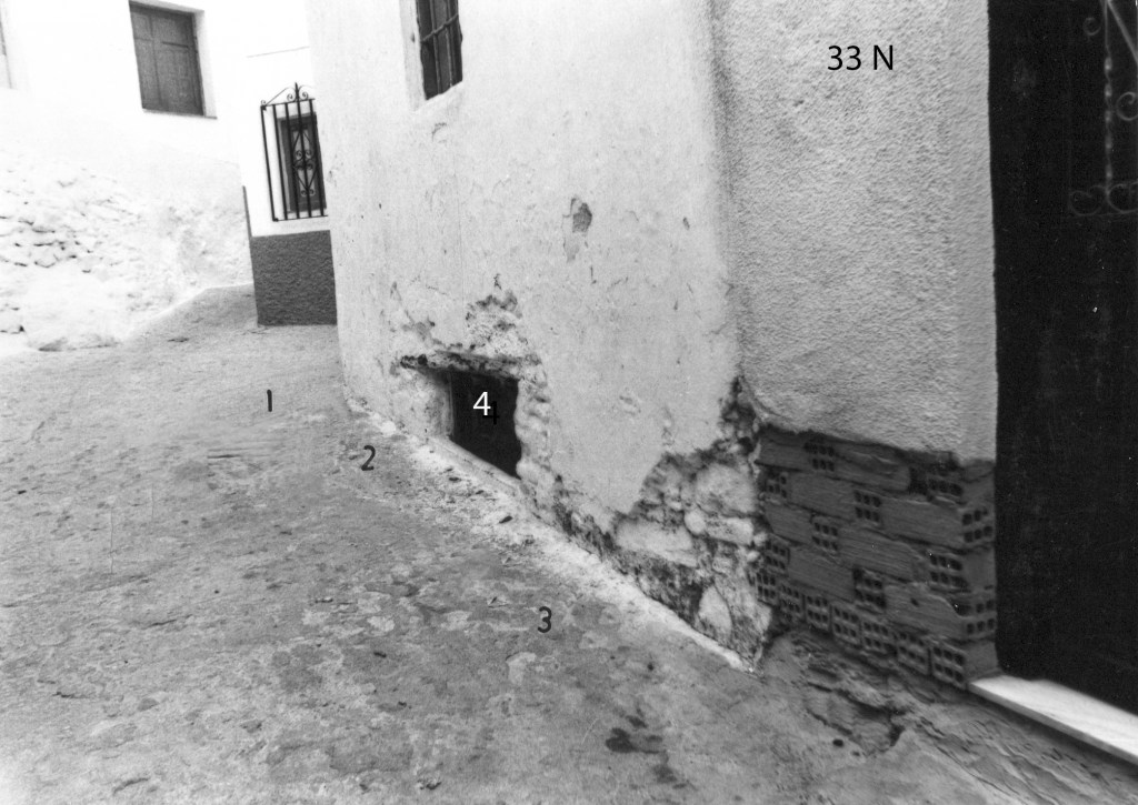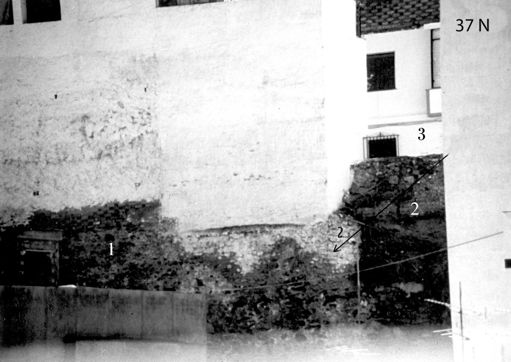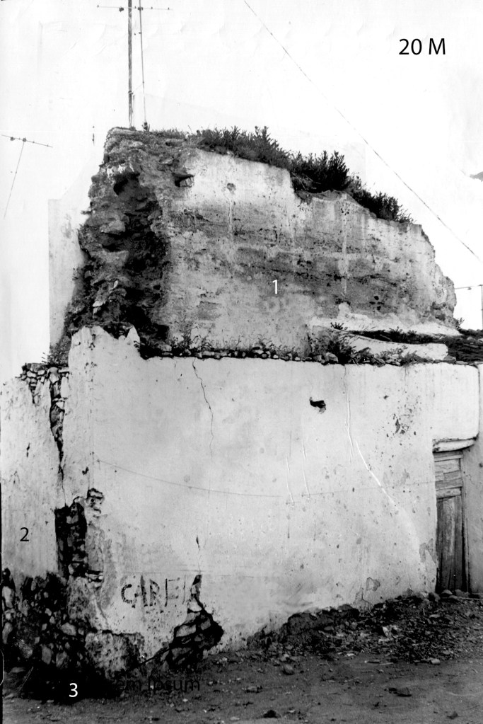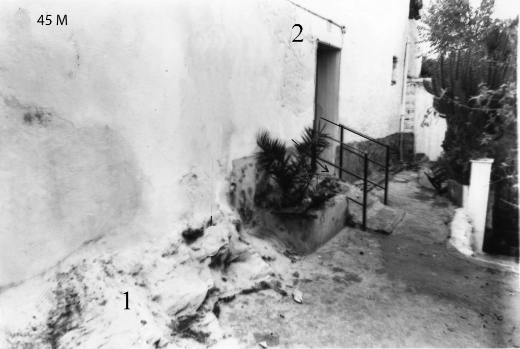 Este dibujo puede servir de ejemplo para afirmar que debieron existir tumbas con monumentos funerarios cubriendo la sepultura. Quiero recordar que los sillares abundaban apilados junto al muro de la finca conocida como La Cerca. Después, probablemente fueron reutilizados en casas nuevas que se construyeron en sus cercanías; y otros sillares podían proceder de la tumba con dromos (4C), porque este elemento funerario está construido de sillares, de los que faltan gran cantidad.