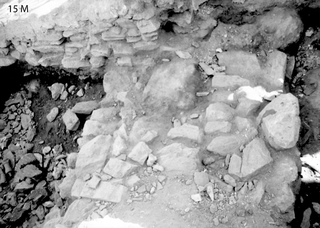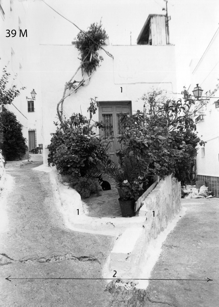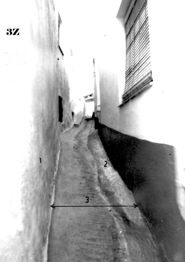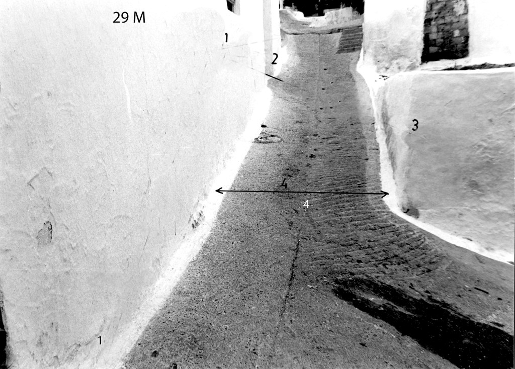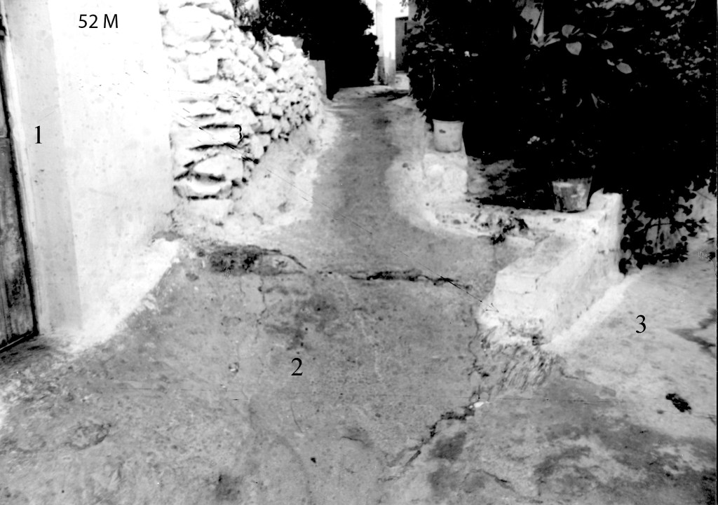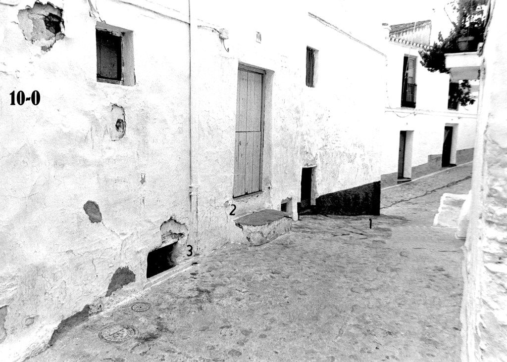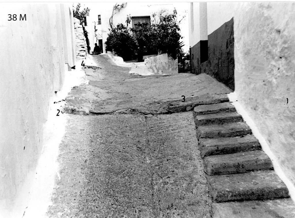 Este dibujo puede servir de ejemplo para afirmar que debieron existir tumbas con monumentos funerarios cubriendo la sepultura. Quiero recordar que los sillares abundaban apilados junto al muro de la finca conocida como La Cerca. Después, probablemente fueron reutilizados en casas nuevas que se construyeron en sus cercanías; y otros sillares podían proceder de la tumba con dromos (4C), porque este elemento funerario está construido de sillares, de los que faltan gran cantidad.