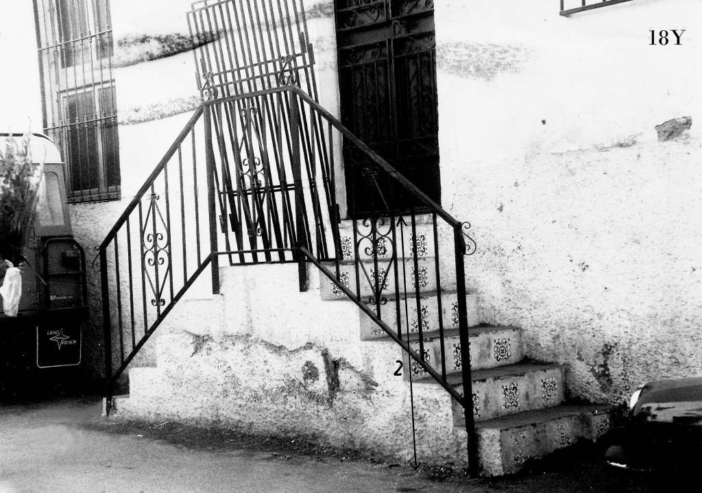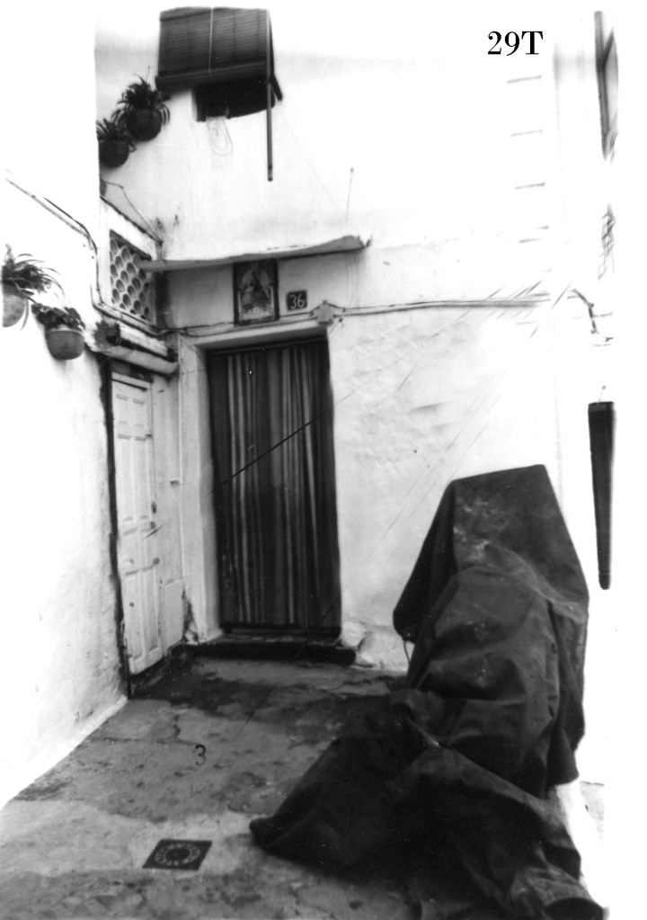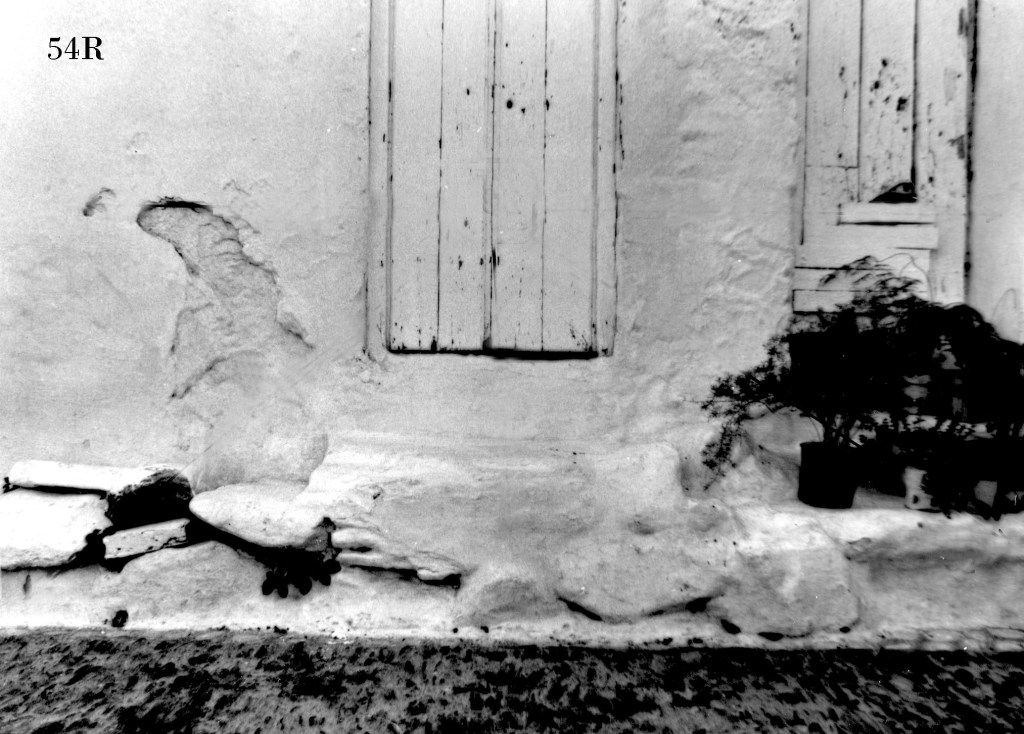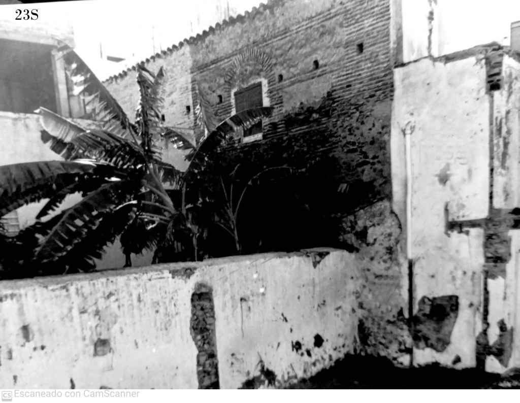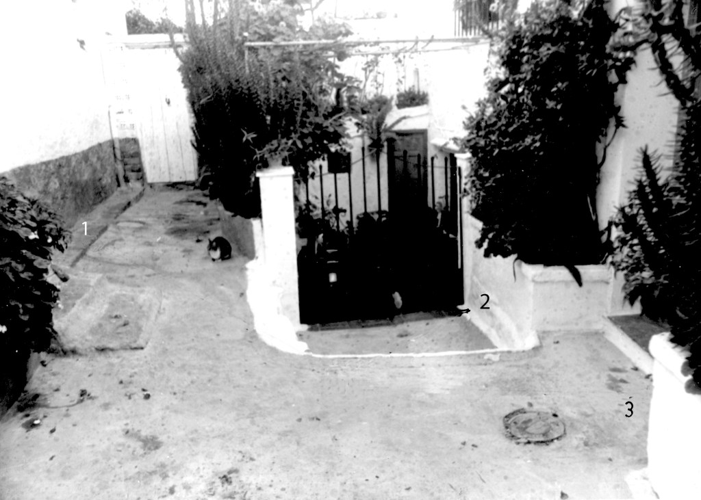 Foto 4.- Las dos imágenes que se van a mostrar secuencialmente nos indica que los nombrados leones fenicios se encontraban, años atrás, en el jardín de este vivienda. La cara del león está desgastada por las circunstancias que en se encontraba este elemento: bastante deformado.